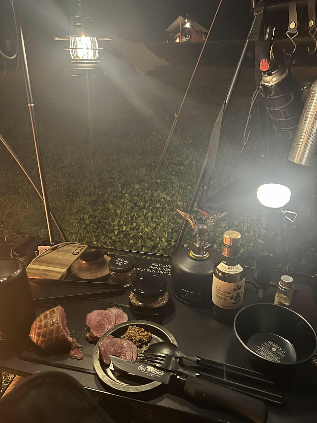 ビールのつまみ用にナッツを入れたり、焼肉をしたらタレを入れて使ったり、何かと便利です。グルキャンの時は幾つかの大皿料理の取り皿としてチタンシェラカップとこのプレートを使っています。
