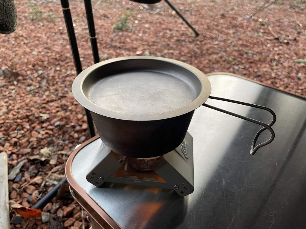 シェラプレートは、ブラスト加工の黒酸化発色やチタン・ステンレスの質感が映える重厚デザインで所有欲を刺激します。シェラカップにぴったりフィットし、蓋・小皿・炊飯時の重しなど多用途に活躍。縁付き形状が汁物や薬味をこぼさず受け止め、熱伝導が低いため素手でも扱いやすいのが特長です。適度な重みで強風でも飛ばされず、スタッキングしてコンパクトに携行できるため登山やツーリングにも最適。プレゼントにも喜ばれ、サイト全体を統一するアクセントとして高評価を得ています。