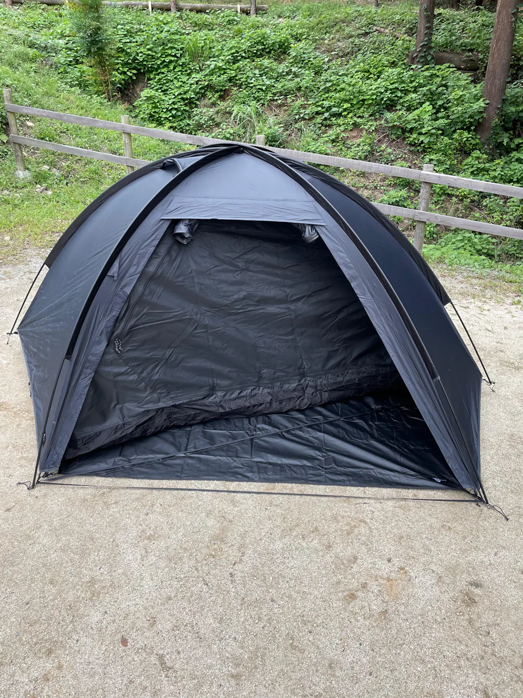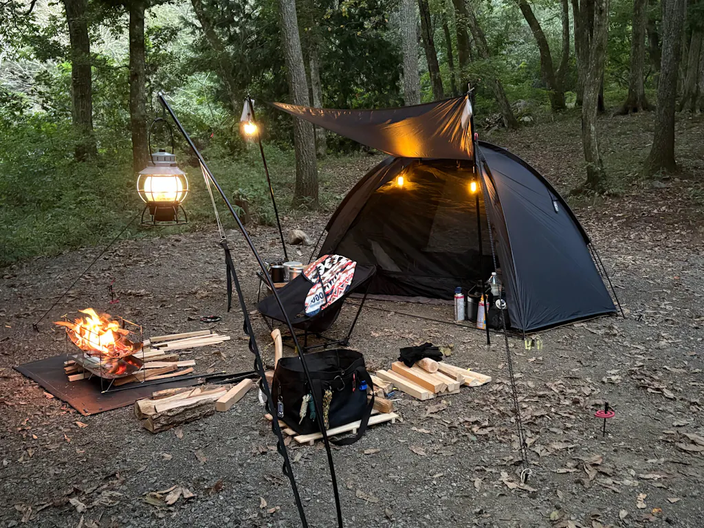 ナイトローバーは、3本ポールの自立構造で直感的に素早く設営できる軽量ソロ〜デュオ向けテントです。インナーとグランドシートを連結したまま撤収・再設営でき、移動を伴うキャンプでも時短。前後の前室が荷物整理と動線を快適にし、フルメッシュで通気も良好。ブラック/グレーともにシャープな佇まいと価格以上の満足度、雨風に耐える安定性、バイク積載にも収まるコンパクトさが高く評価されています。