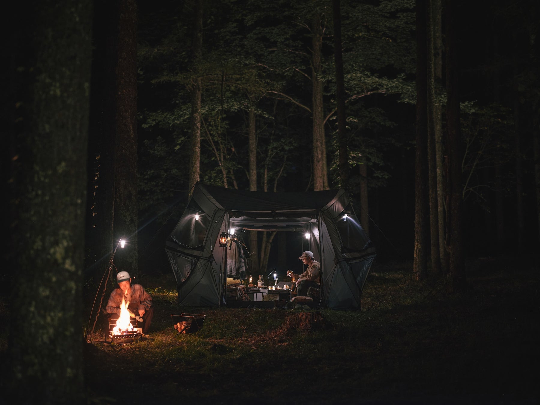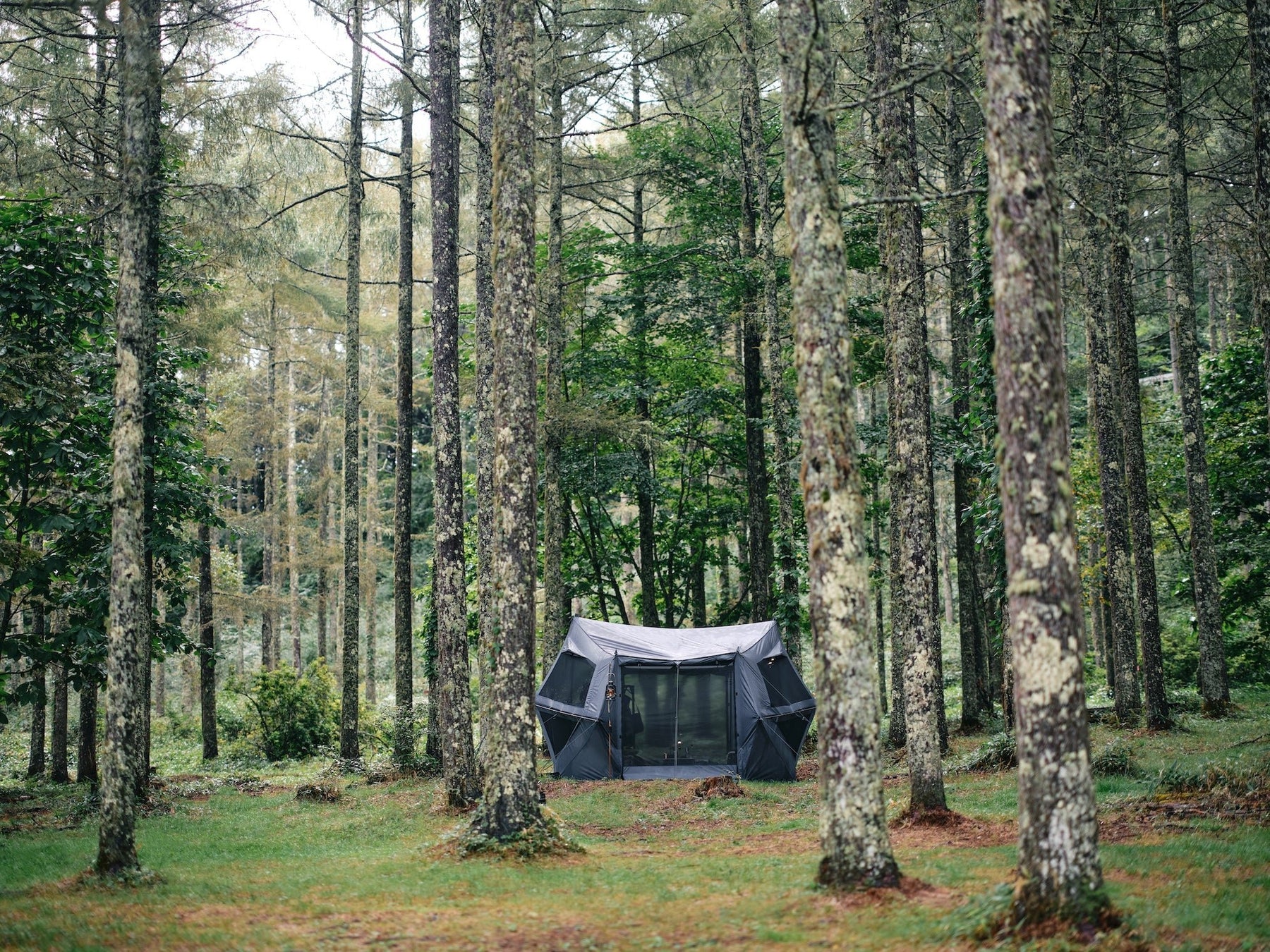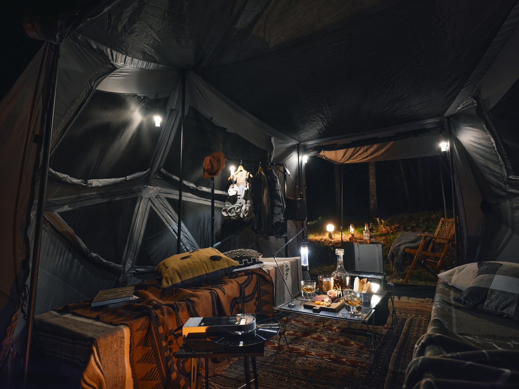 「持ち運べるグランピング」をコンセプトに、グランピングに求められる贅沢な要素を、キャンプ用シェルターに落とし込みました。