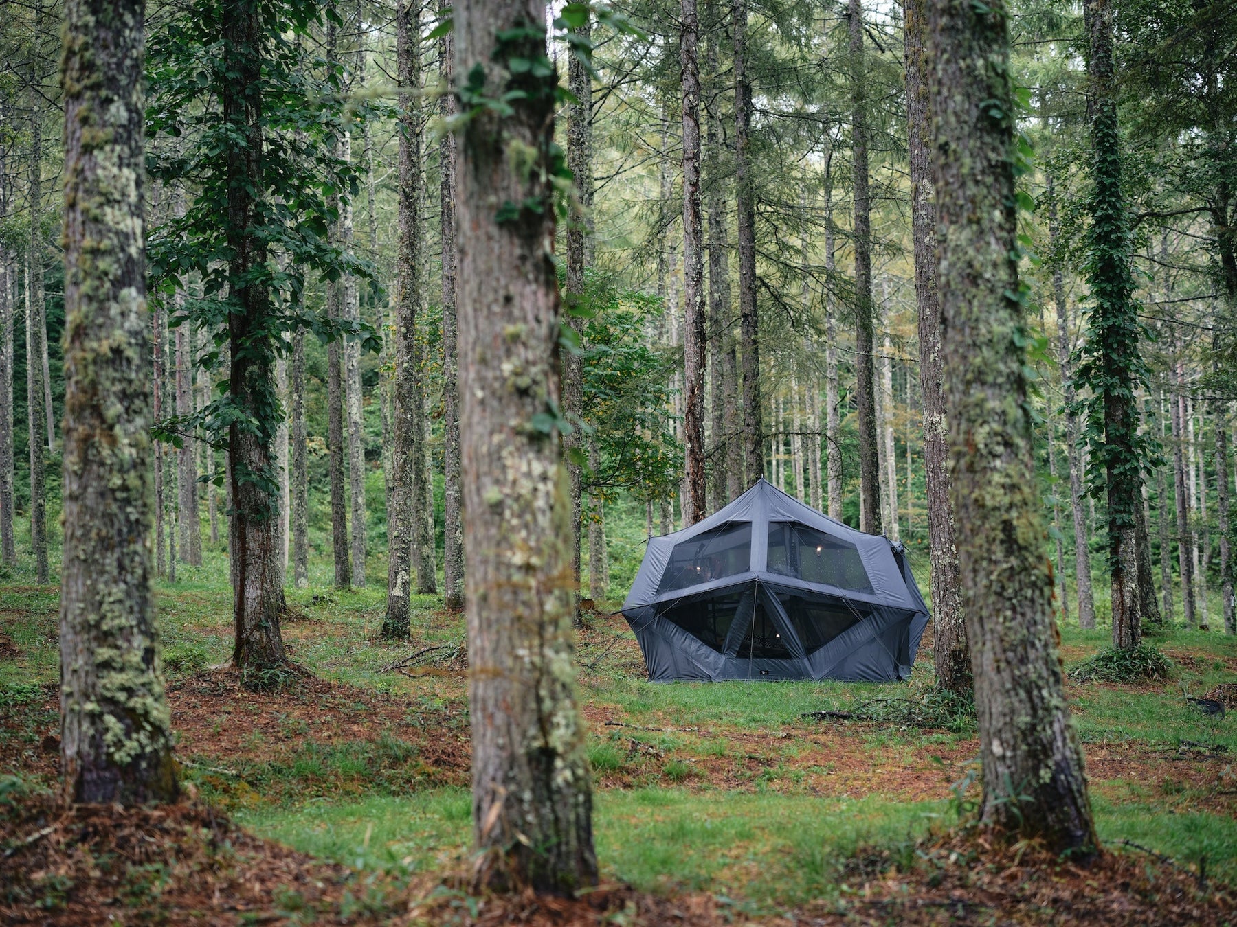 ドーム型テントの半球形状よりも、より球体に近い形状は、視覚的にインパクトがあります。特に、球の下部(アンダー部)が視認できることで、通常の半球型テントにはない独特の存在感を生み出します。
