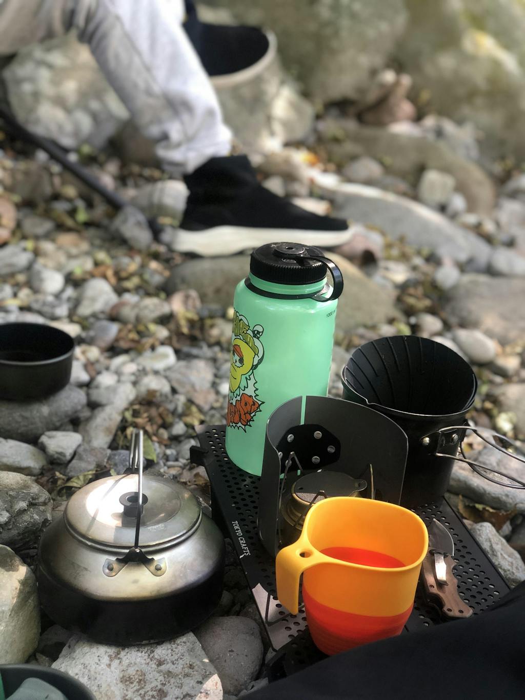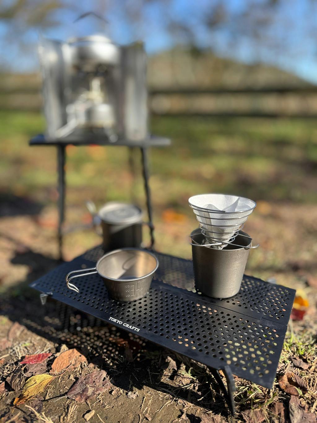 コーヒーを淹れたり、調理をする際にも頼れるミニテーブル。ソロキャンプやトレッキングなど、幅広いアウトドアアクティビティで活躍します。