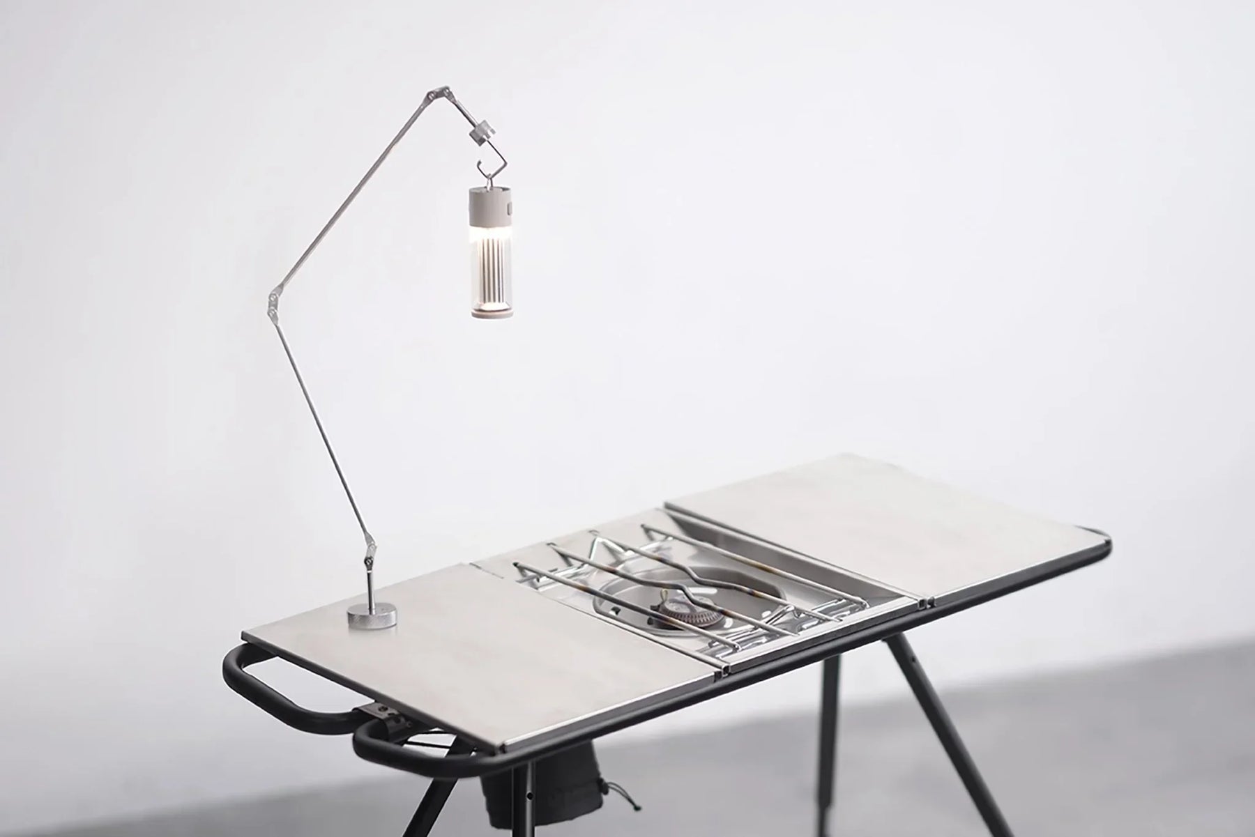 シンプルなキャンプ用キッチンテーブルをさらに便利に使いたいなら、オプションのランタンスタンドや拡張天板を後付けするのも手です。専用ポールを取り付けるだけで、ランタンを吊るしたり調味料ラックを増設できる製品もあります。