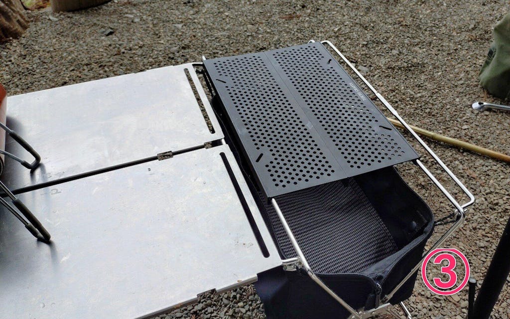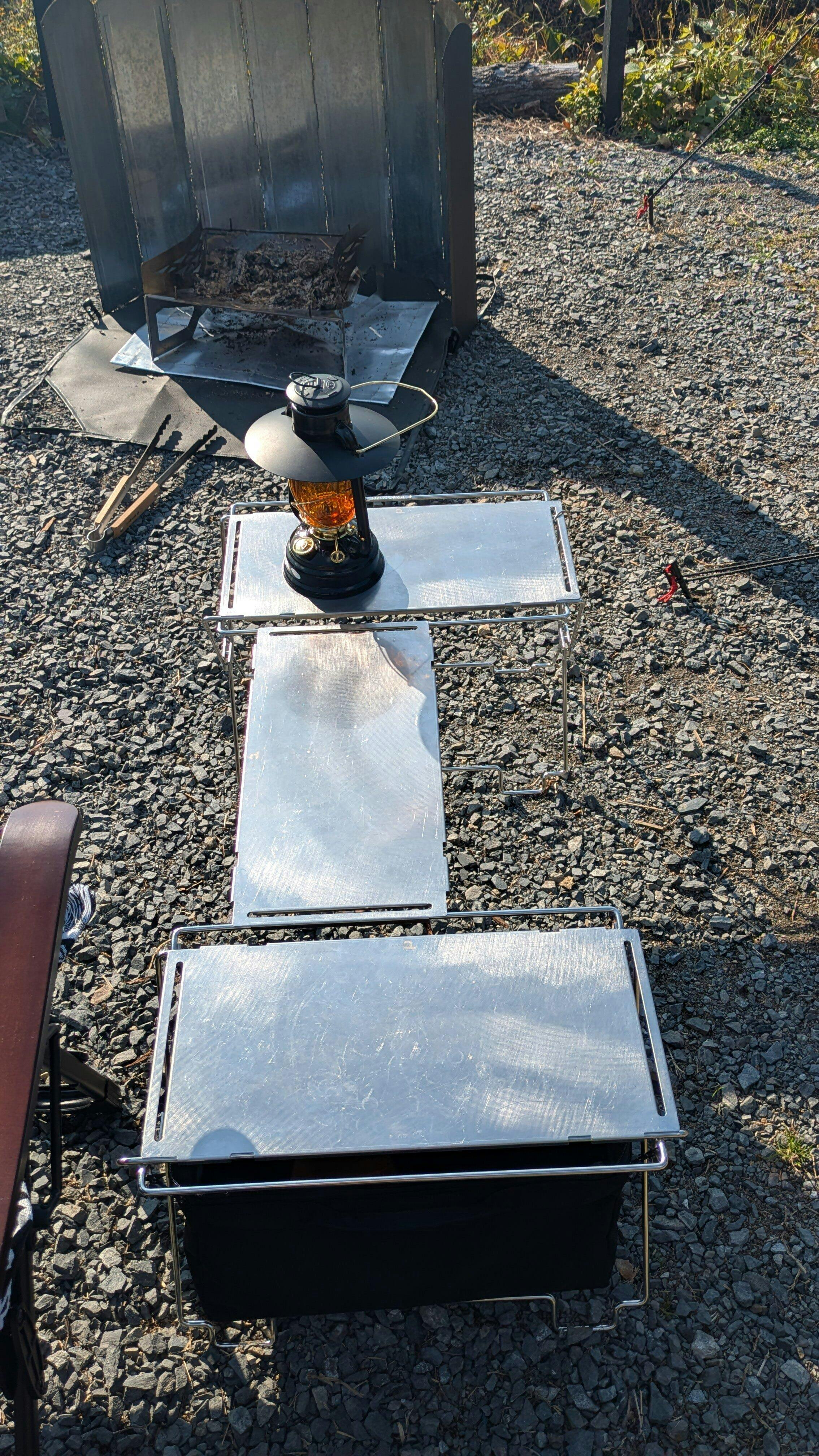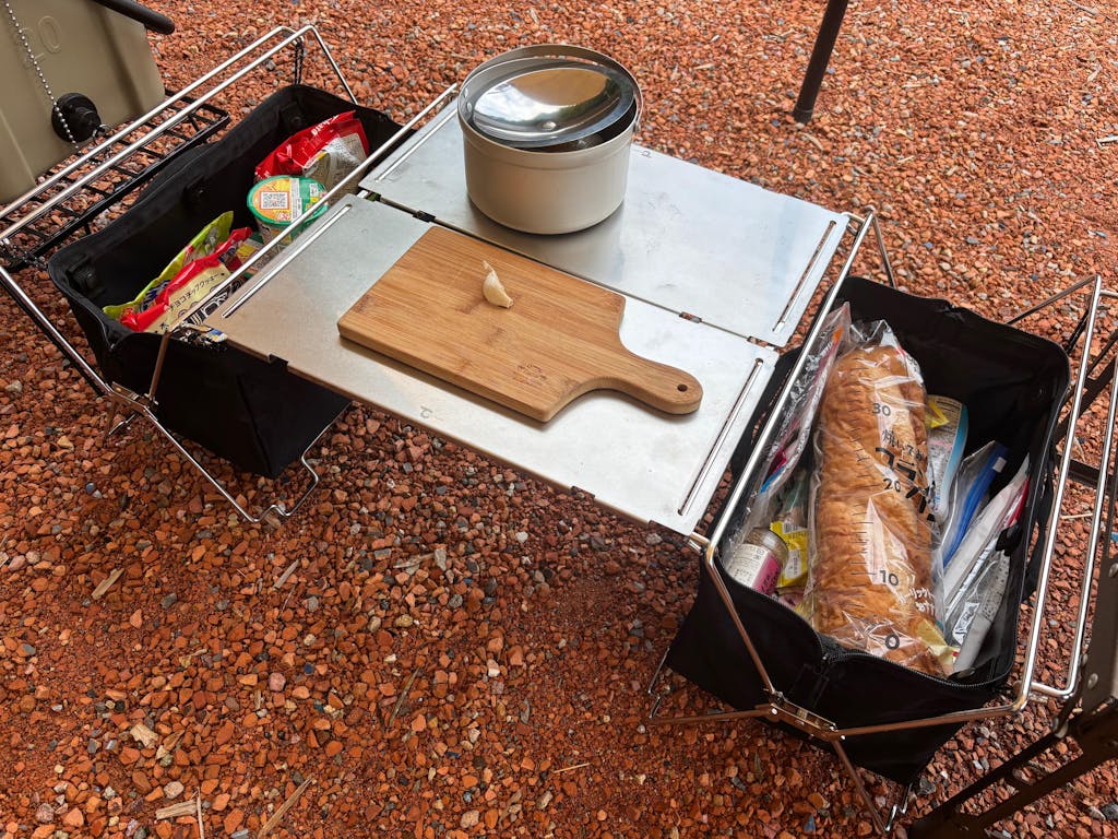 コードユニットは、ステンレスの洗練デザインとモジュール構造が生む自在なレイアウト性が魅力。テーブル・ラック・薪置きなど多用途に対応し、マルチバッグやバケットシェルフ、フラットバーナーとの連携でサイトを一気にスタイリッシュに統一できる。工具不要で設営撤収が迅速、折りたたんでコンパクトに収納可能。高い耐久性と安定感を備え、天板を追加すれば三段ラックや囲炉裏テーブルへの変形も自在。ギアを選ばないシルバーの質感がサイト全体に統一感をもたらし、リピート購入者が続出する拡張性の高いキャンプギアとして評価されている。