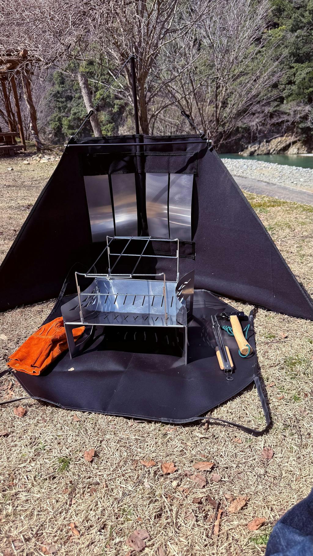 そんな姿もサマになる、TOKYO CRAFTSの焚き火シートです。