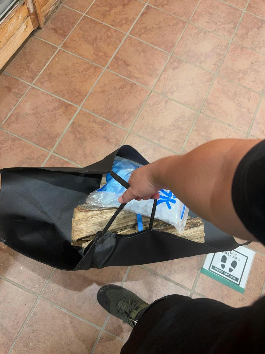 持ち手部分はシートと同じ素材で、重さのある薪の持ち運びにも耐えられる縫製になっています。