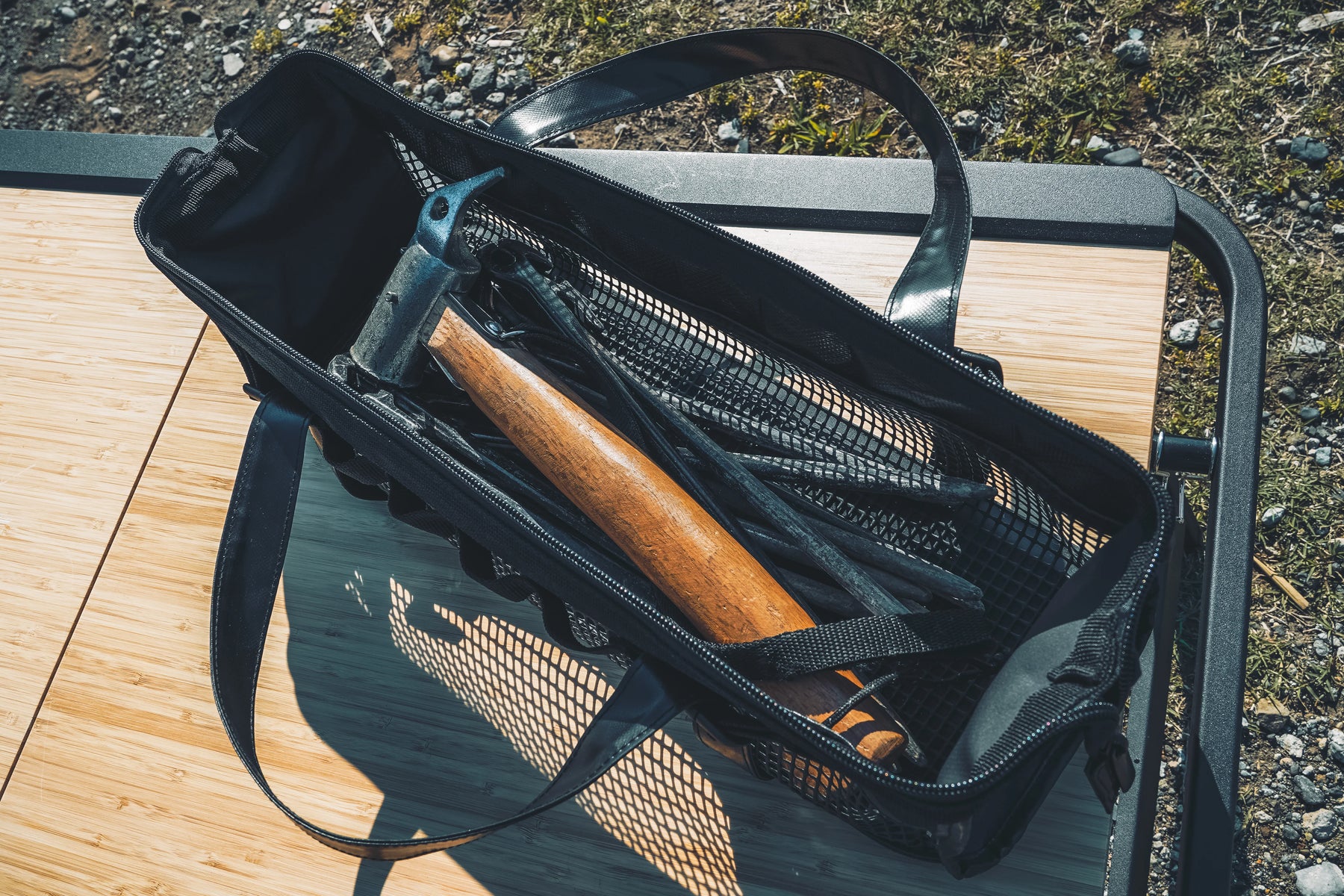 さらに、ペグは「打った本数分だけ、抜かなければならない」ことも忘れてはいけません!。20本しっかり地面に固定して、20本引き抜くという作業を行うのは、石や普通の金槌では大変です。