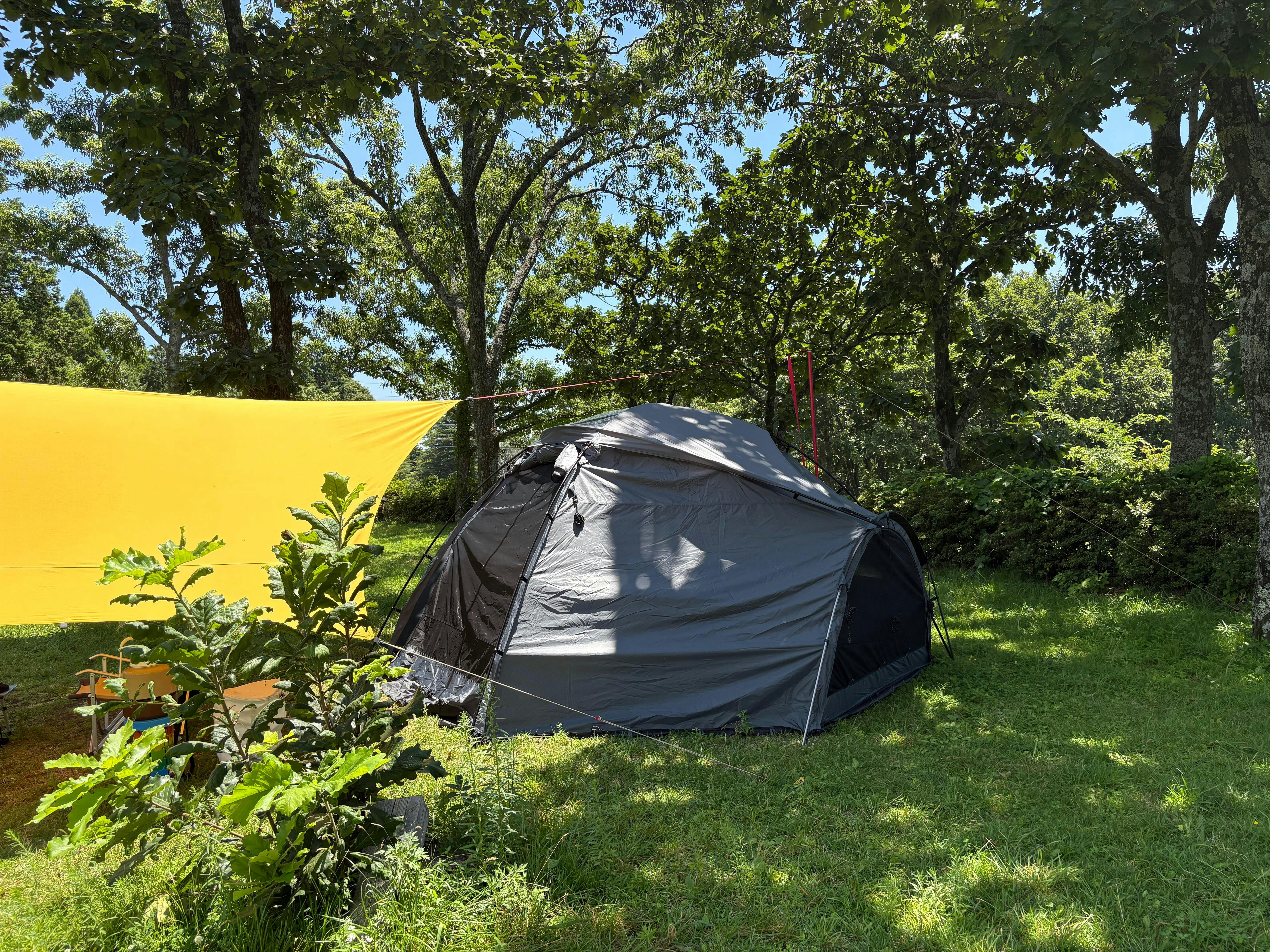 両サイドのメッシュ窓は、ちょうどコットを置く位置に合わせて配置。夏の蒸し暑い夜や湿度の高い日でも、テント内に十分な風の流れをつくり出します。また、別売りの仕切り付きインナーテントはこのシェルターの大きな特徴のひとつ。一般的な「川の字」スタイルではなく、真ん中にファスナー仕切りを設けた独自構造によって、夫婦や友人同士でもお互いのプライバシーを大切にできるようになりました。寝るときも着替えるときも、必要なときは仕切りを閉じれば各々がパーソナルスペースを確保できます。