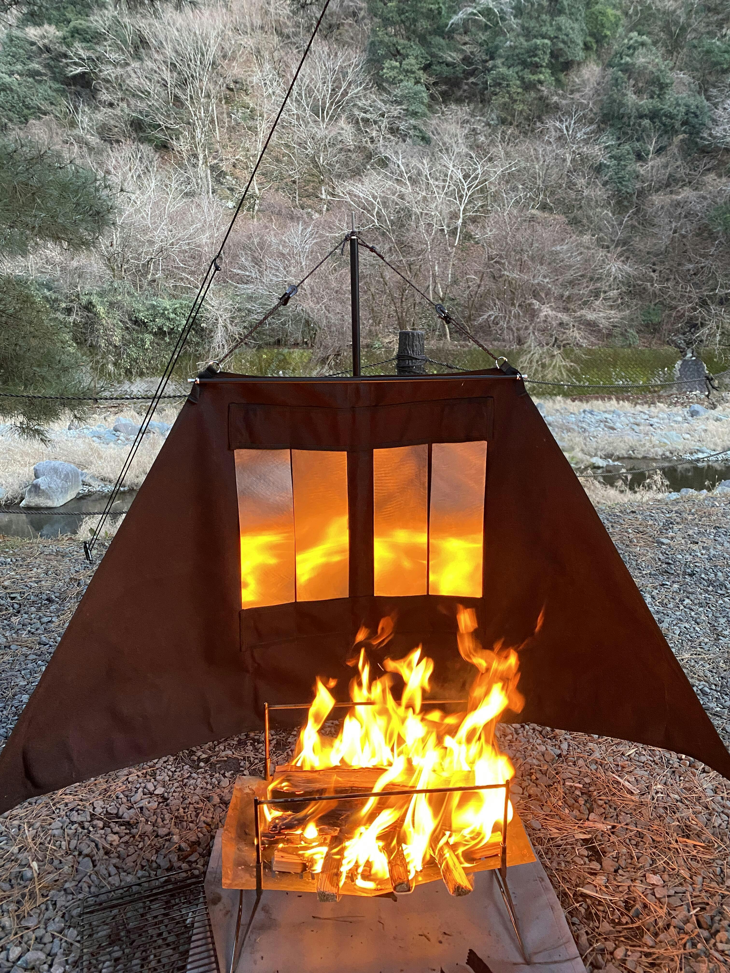 焚き火を安定させつつ、冬でも暖かさをキープ。目隠しとしても一役買ってくれるので、よりプライベートな焚き火の時間を楽しめます。