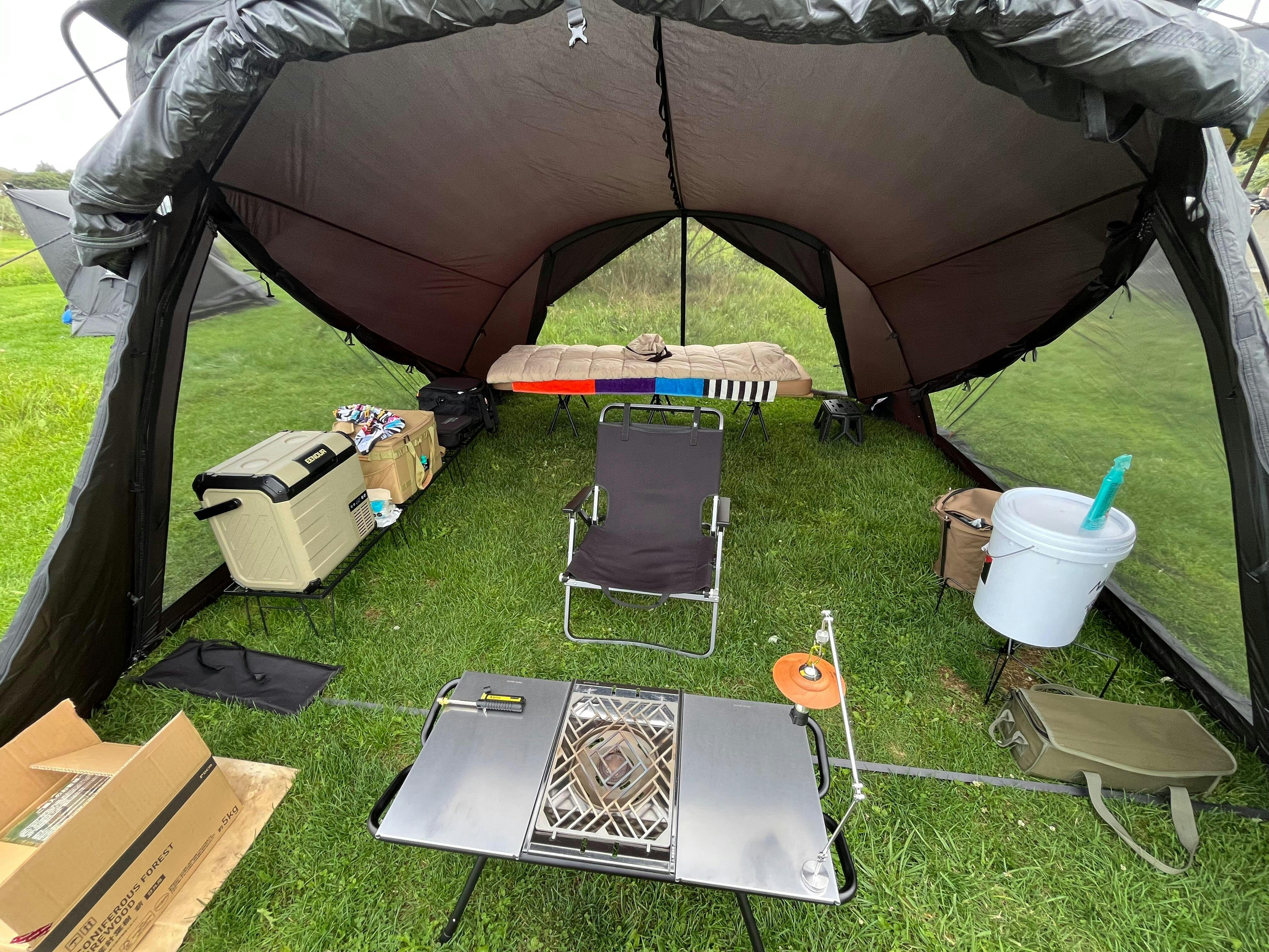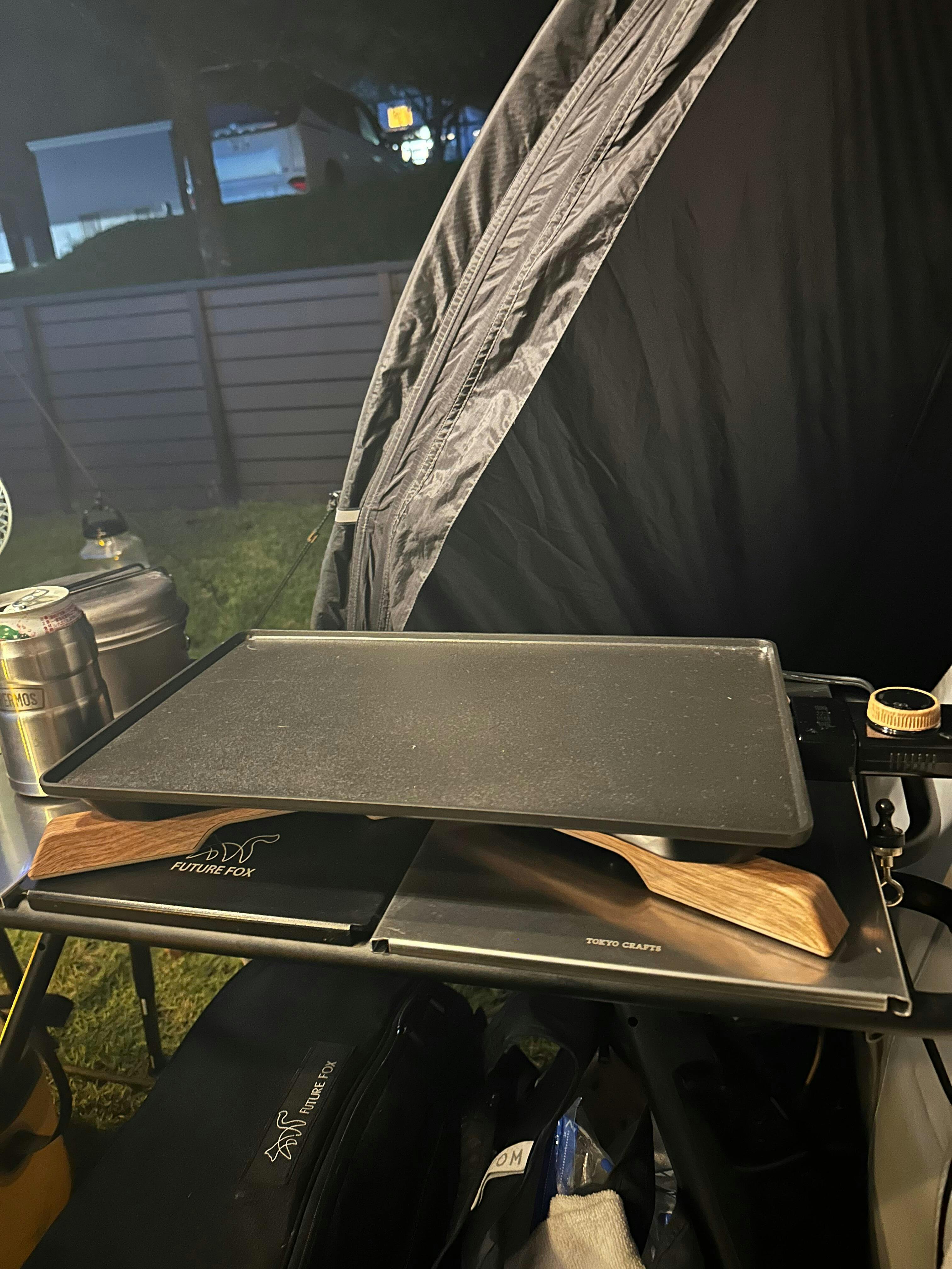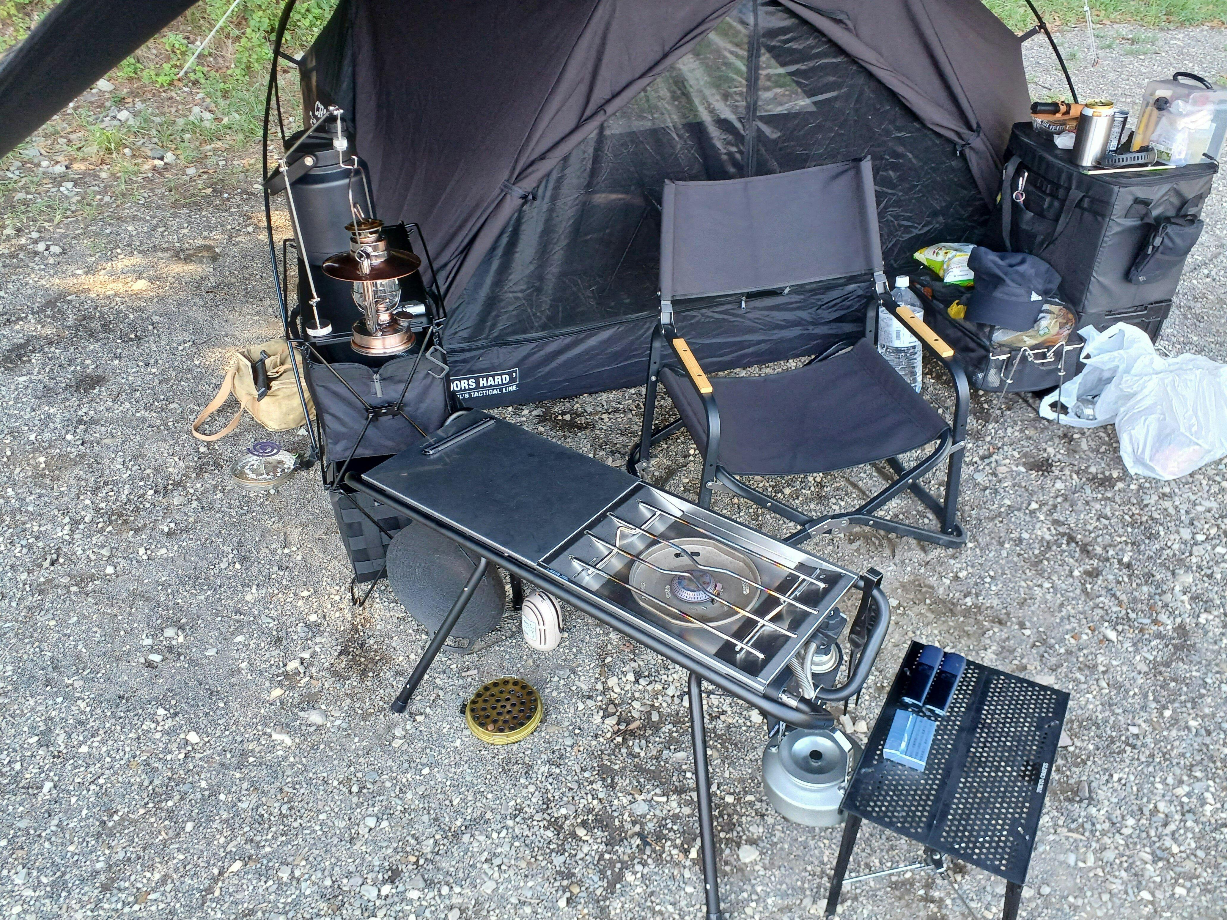 MFTマルチフレームテーブルは、シーンに合わせて形を変えられる拡張性と、二段階の高さ調整で「調理台〜サイドテーブル」まで自在に使える点が高評価。薄く折りたためて積載性が高く、慣れれば設営もスムーズ。ユニットや天板追加で使い方が広がり、ランタンやジャグのラック使いも快適。ブラック基調のミニマルデザインがサイトを引き締め、ソロからファミリーまで頼れる万能テーブルとして支持されています。