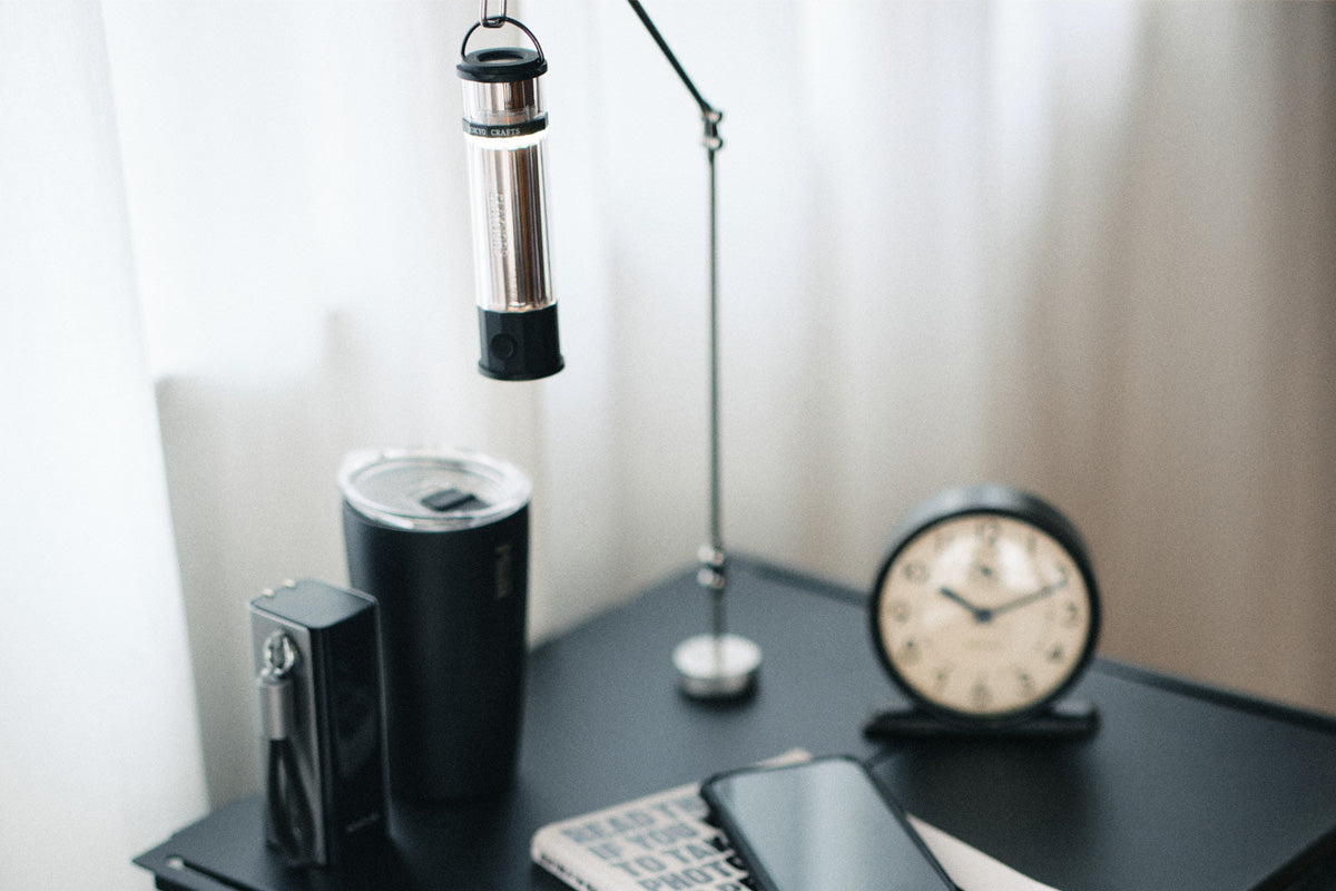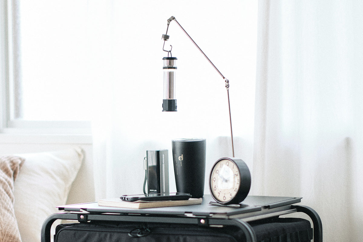 最大の特徴はこの「多関節アーム」。これまでのランタンスタンドは位置が固定されるのが当たり前だったけど、これは照らしたい場所にピンポイントでランタンを持ってこれる!