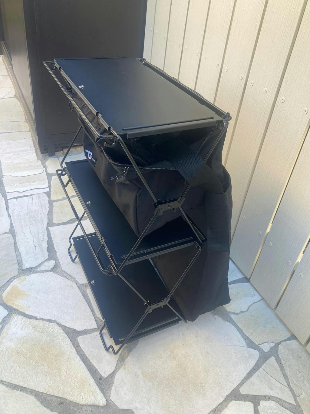 コードユニットほか小さめのテーブルの収納袋として購入。スノーピークやユニフレームの焚き火テーブルも合わせて収納できるくらいの収納力があり生地も丈夫そう。何個かに分かれていたテーブル類をまとめることができて運搬が格段に楽になった。