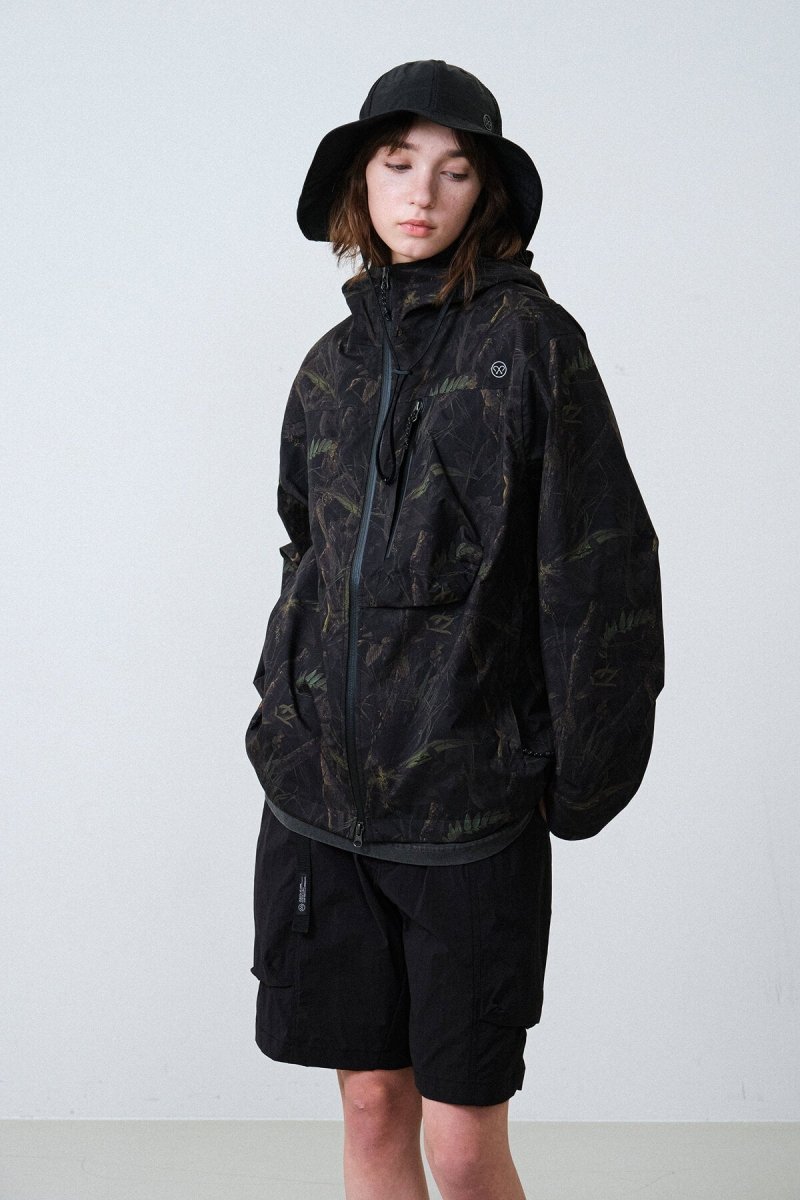 雨天時のフィールドアクティビティに対応する、3レイヤー仕様のレインジャケット。