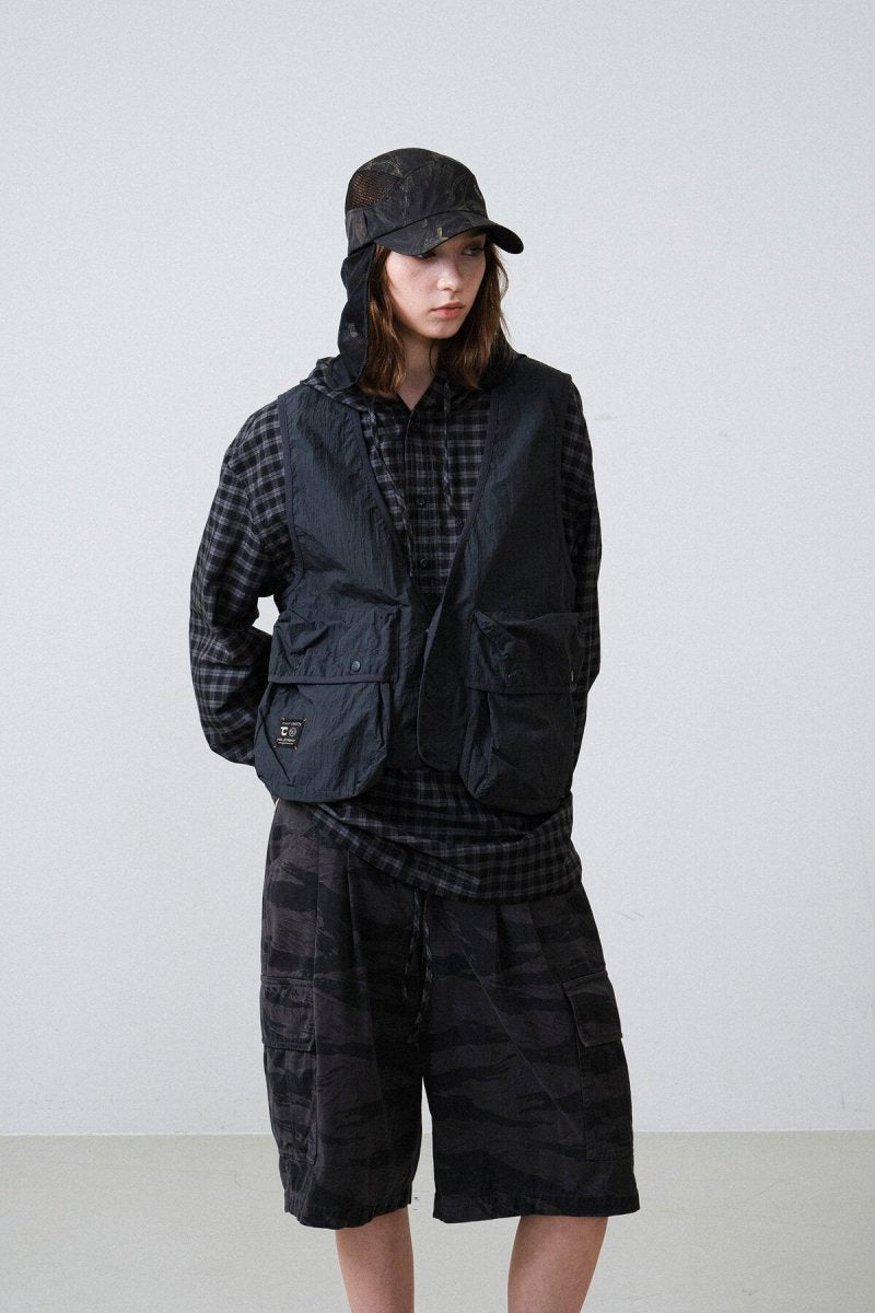 ウェーディングベストの機能美を着想源に、現代的に再解釈した一着。