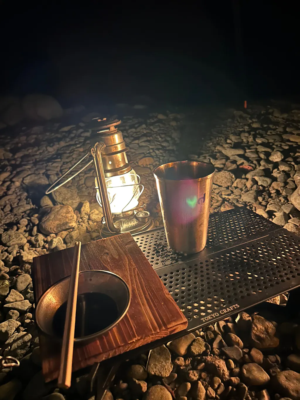 コーヒーを淹れたり、調理をする際にも頼れるミニテーブル。ソロキャンプやトレッキングなど、幅広いアウトドアアクティビティで活躍します。
