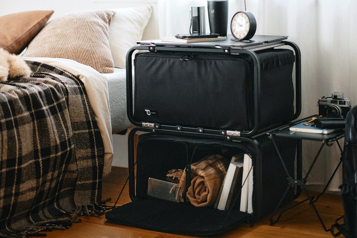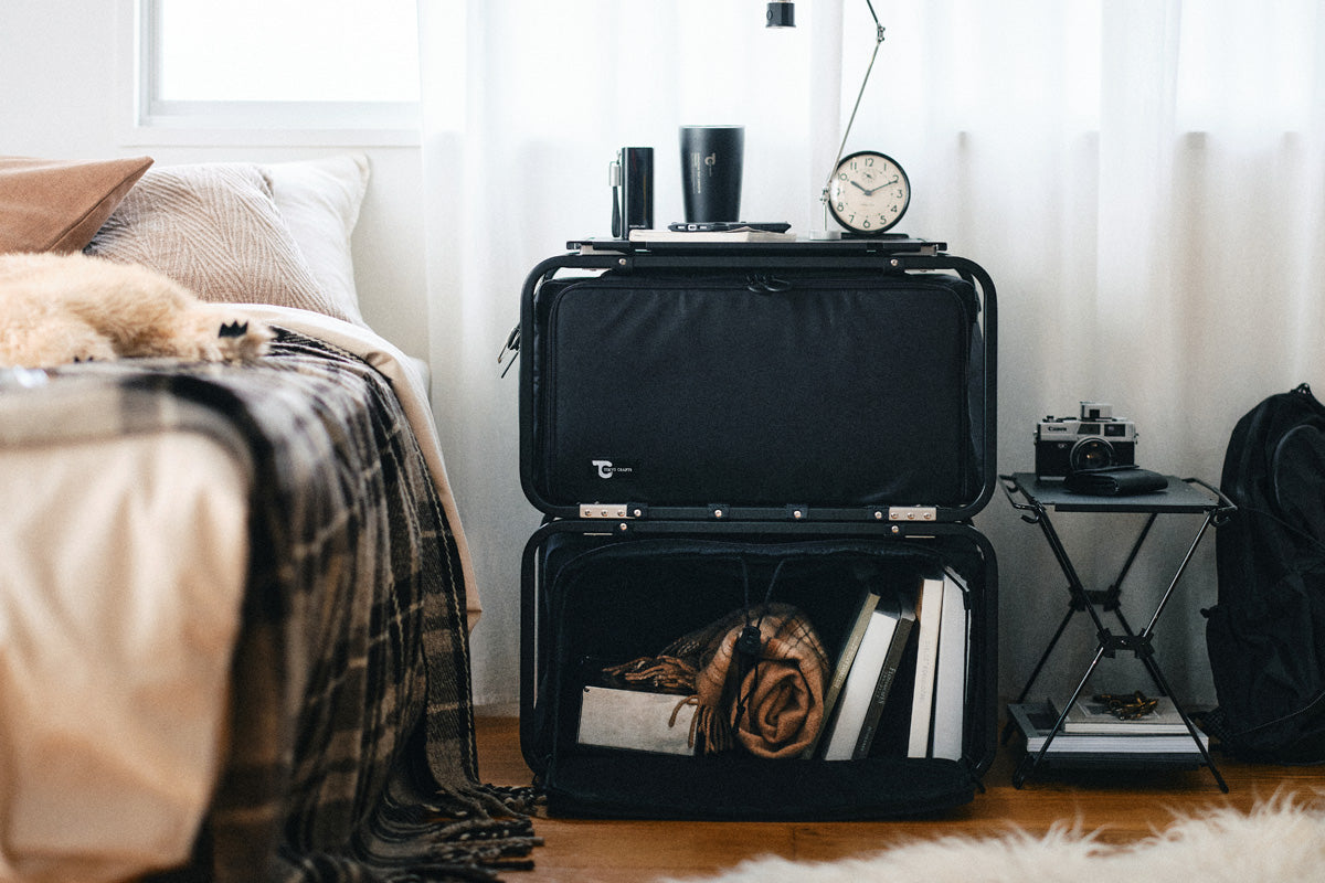 コードユニットと連結したり、上に乗せたりできる仕様。 自身のキャンプスタイルや収納レイアウトに応じて自在に拡張可能です。