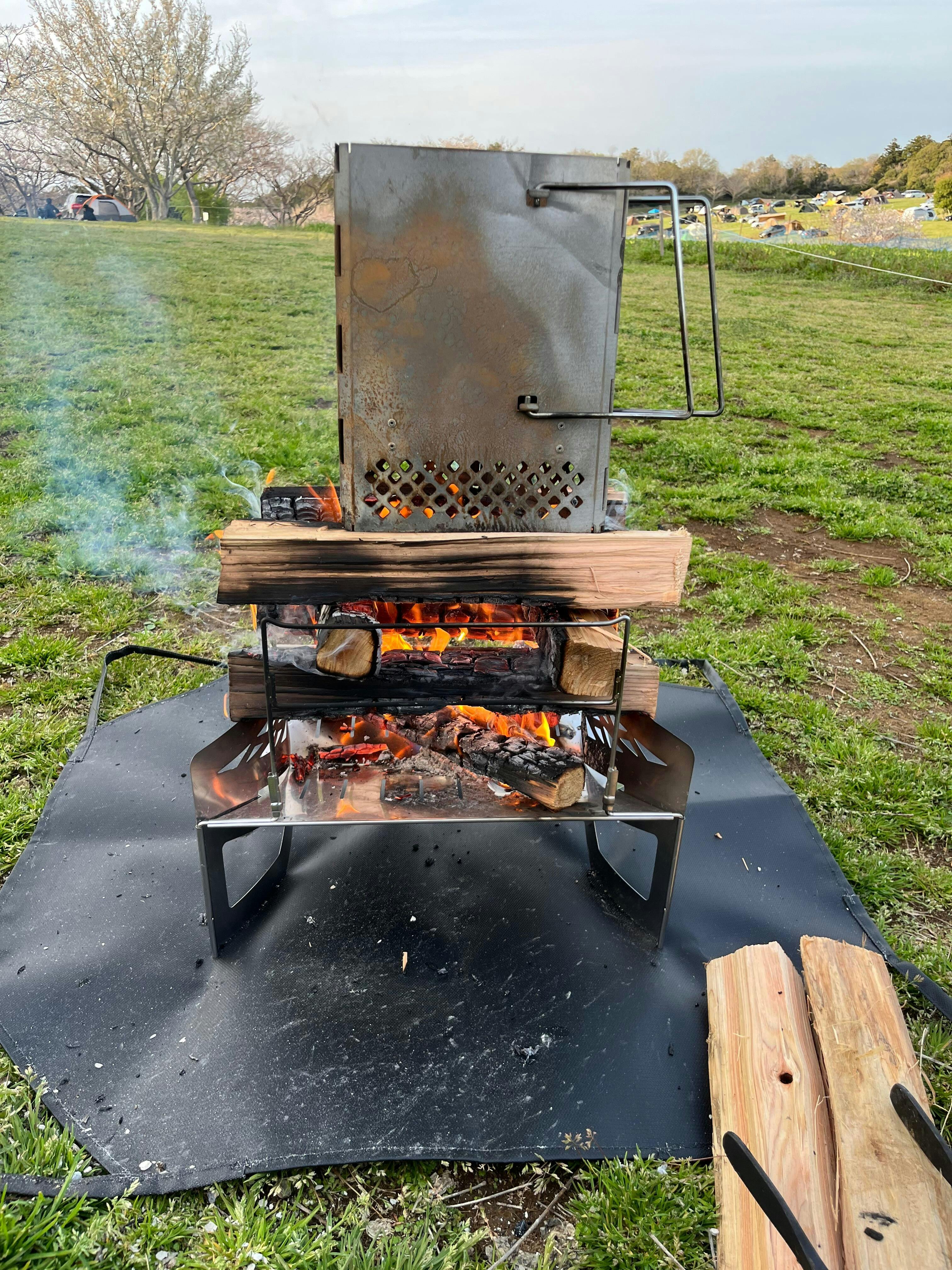 薪運びから焚火まで。保護するだけじゃない焚き火シート。