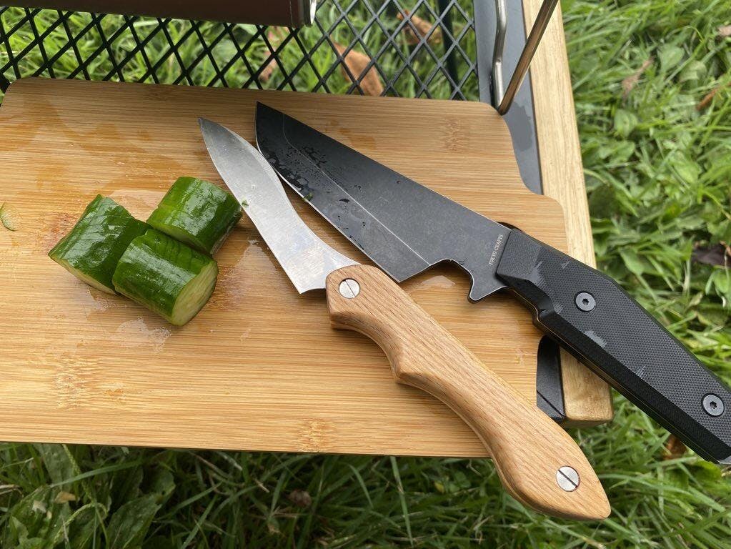 通常のナイフよりも持ち手位置を高くしてテーブルなどに手が干渉せず、快適に作業ができるナイフ。持ち手は滑りにくいG10を採用し、刃厚は3.5mmあるフルタング構造でバトニングでも滑りにくくタフに使用することが出来ます。