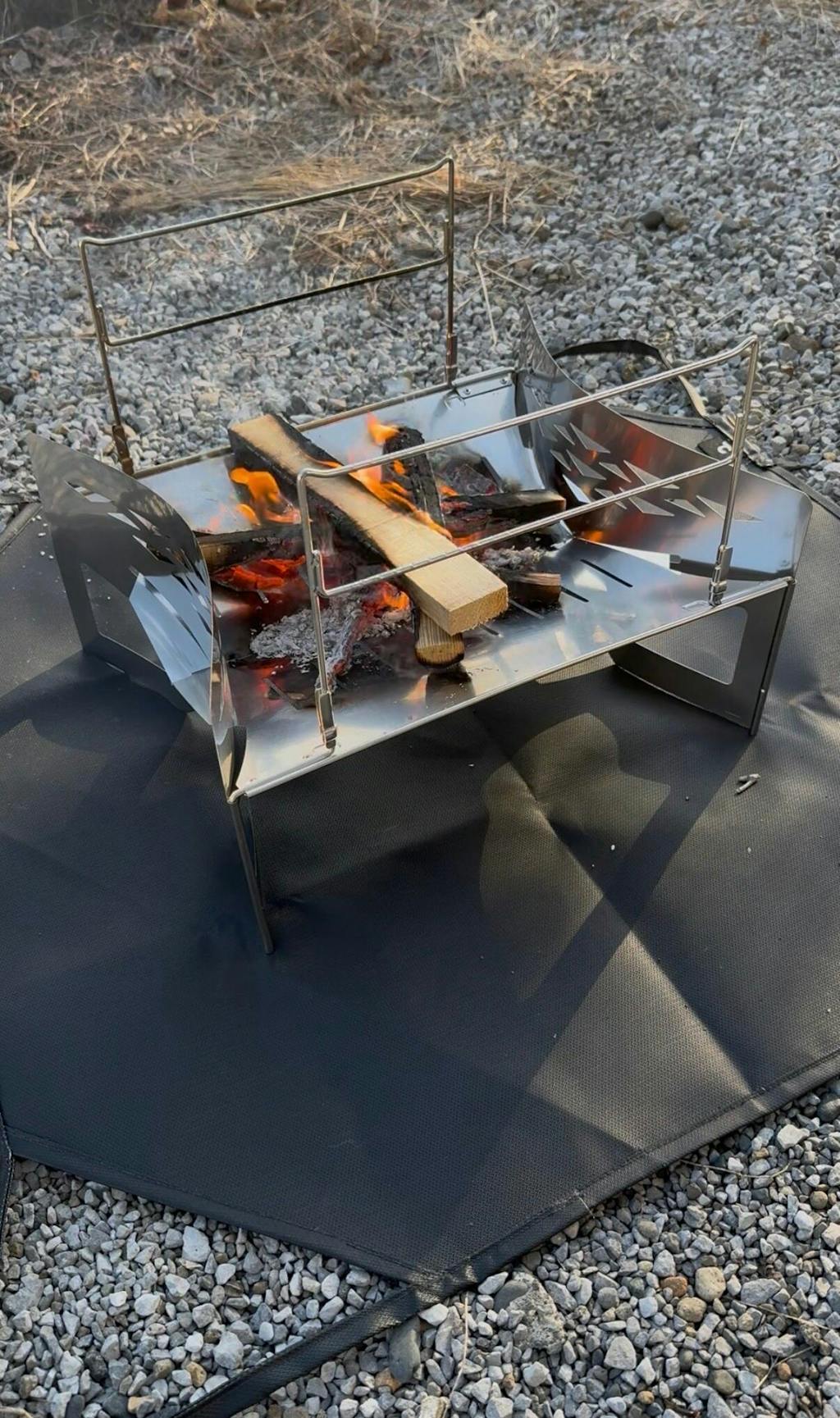 ・飛び跳ねた大きな炭等を常時焚火シートの上に置かないでください。