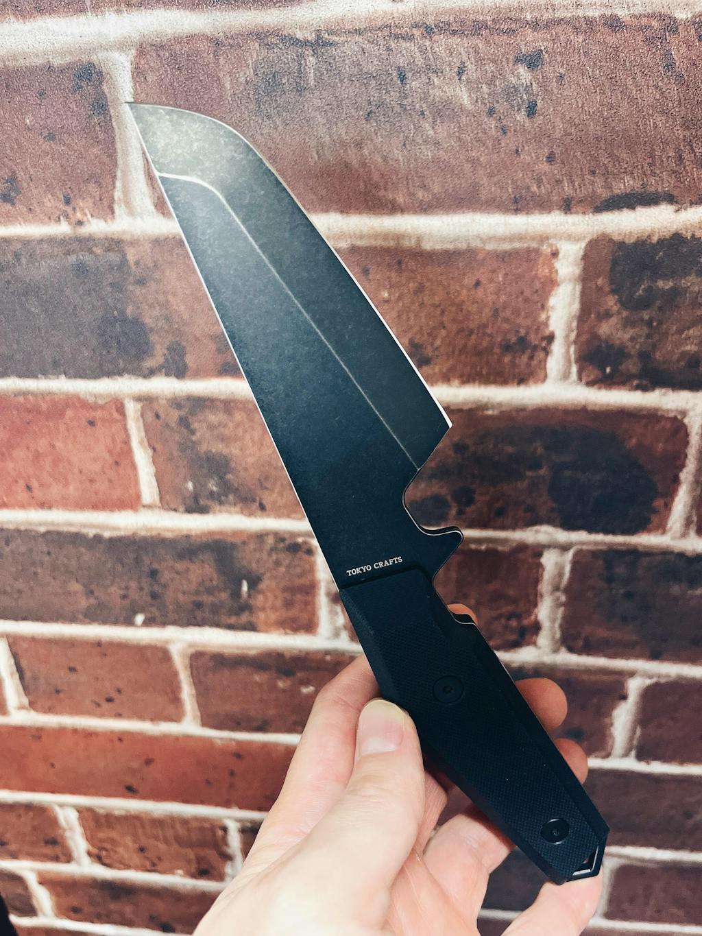 通常のナイフよりも持ち手位置を高くしてテーブルなどに手が干渉せず、快適に作業ができるナイフ。持ち手は滑りにくいG10を採用し、刃厚は3.5mmあるフルタング構造でバトニングでも滑りにくくタフに使用することが出来ます。
