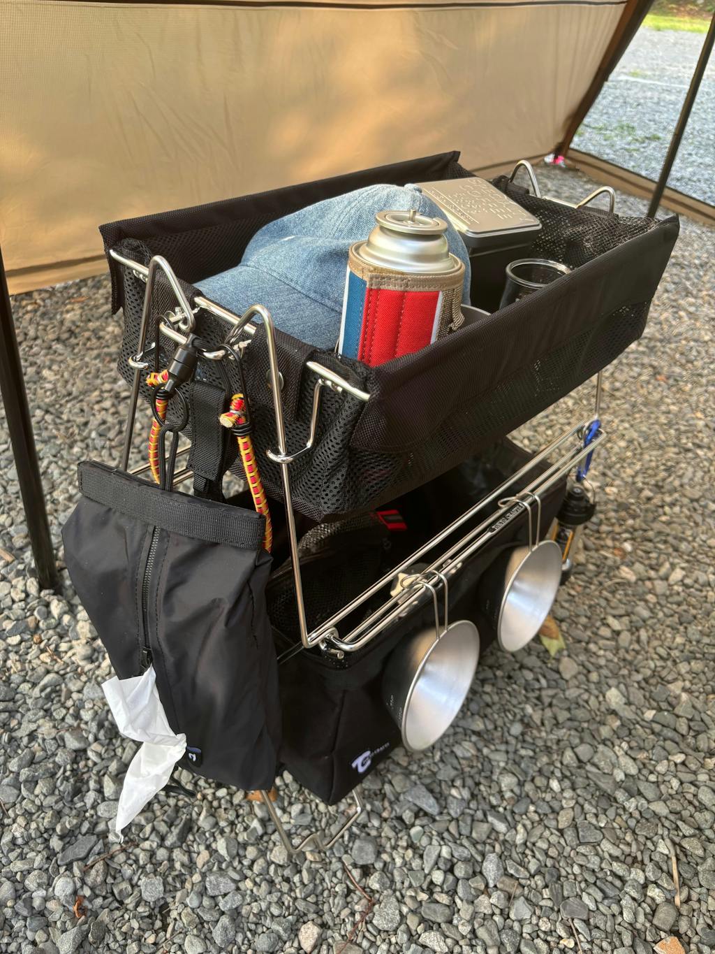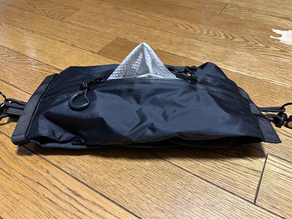 マグリンク ティッシュケースは、マットブラックの無骨デザインと止水ジッパー付きタフ生地で「ティッシュ感」を消しつつギア感を演出。箱ティッシュ/ソフトパック/キッチンペーパーまで対応し、強力マグネット+着脱ストラップでヘッドレスト・ポール・スチール面など好きな場所へワンタッチ装着できる汎用性が光る。ギアレイアウトを崩さずキャンプ・車・自宅をシームレスに行き来し、「これ一つでサイトが引き締まる」と高く評価されている。