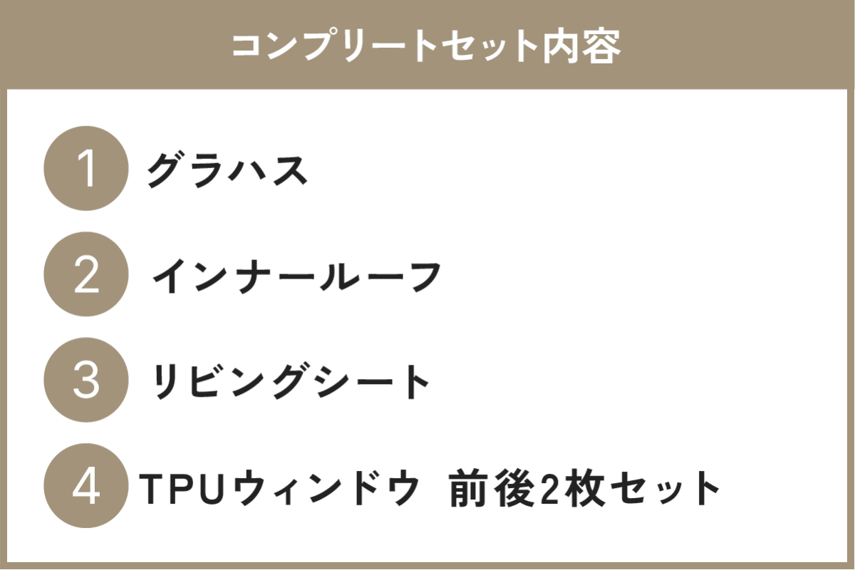 ・ペグ、ロープについてはフルクローズ時に必要な本数を同梱しています。跳ね上げ等をされる際は、必要に応じてお客様にてご用意をお願いします。 - 配送時期について