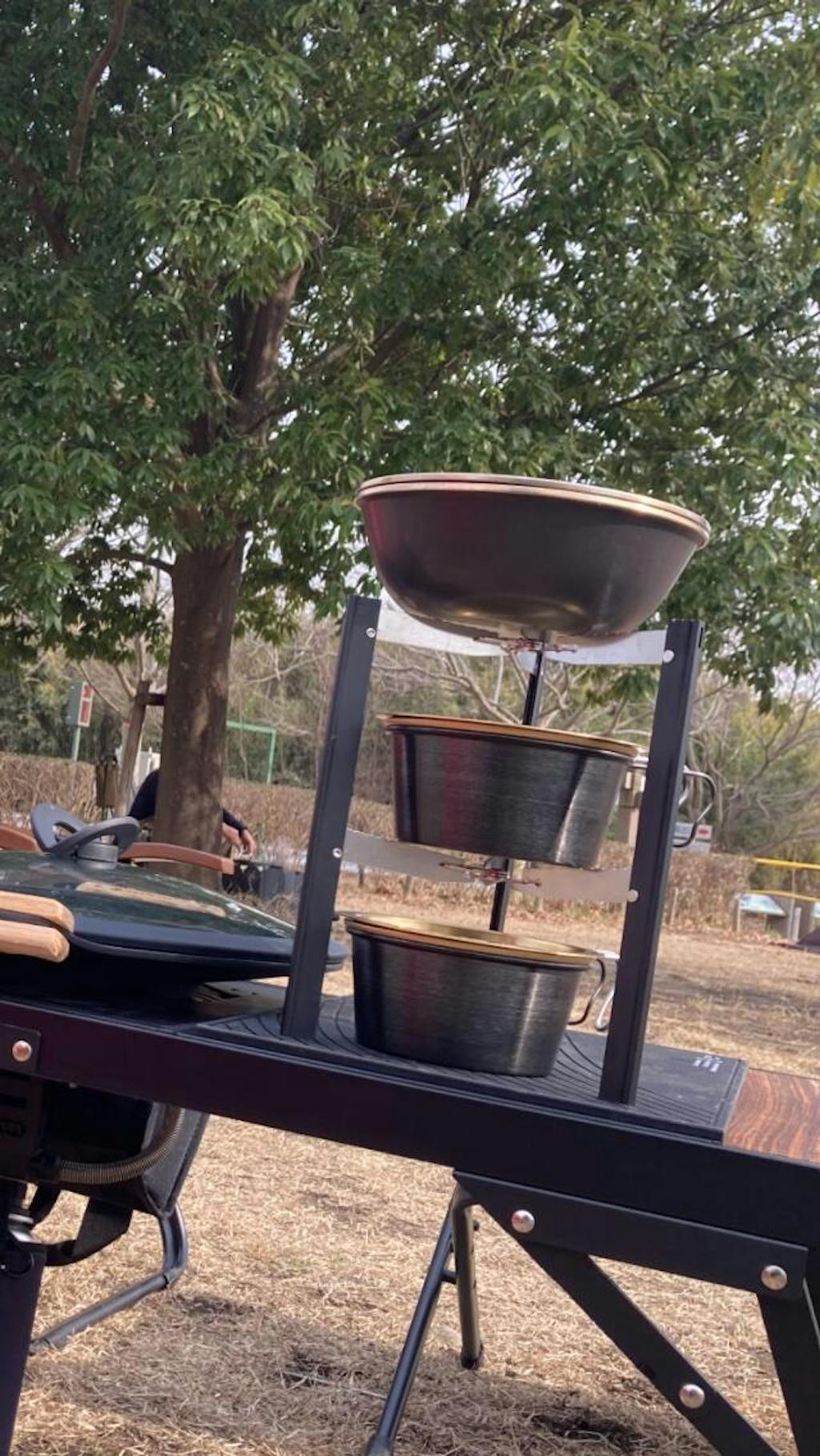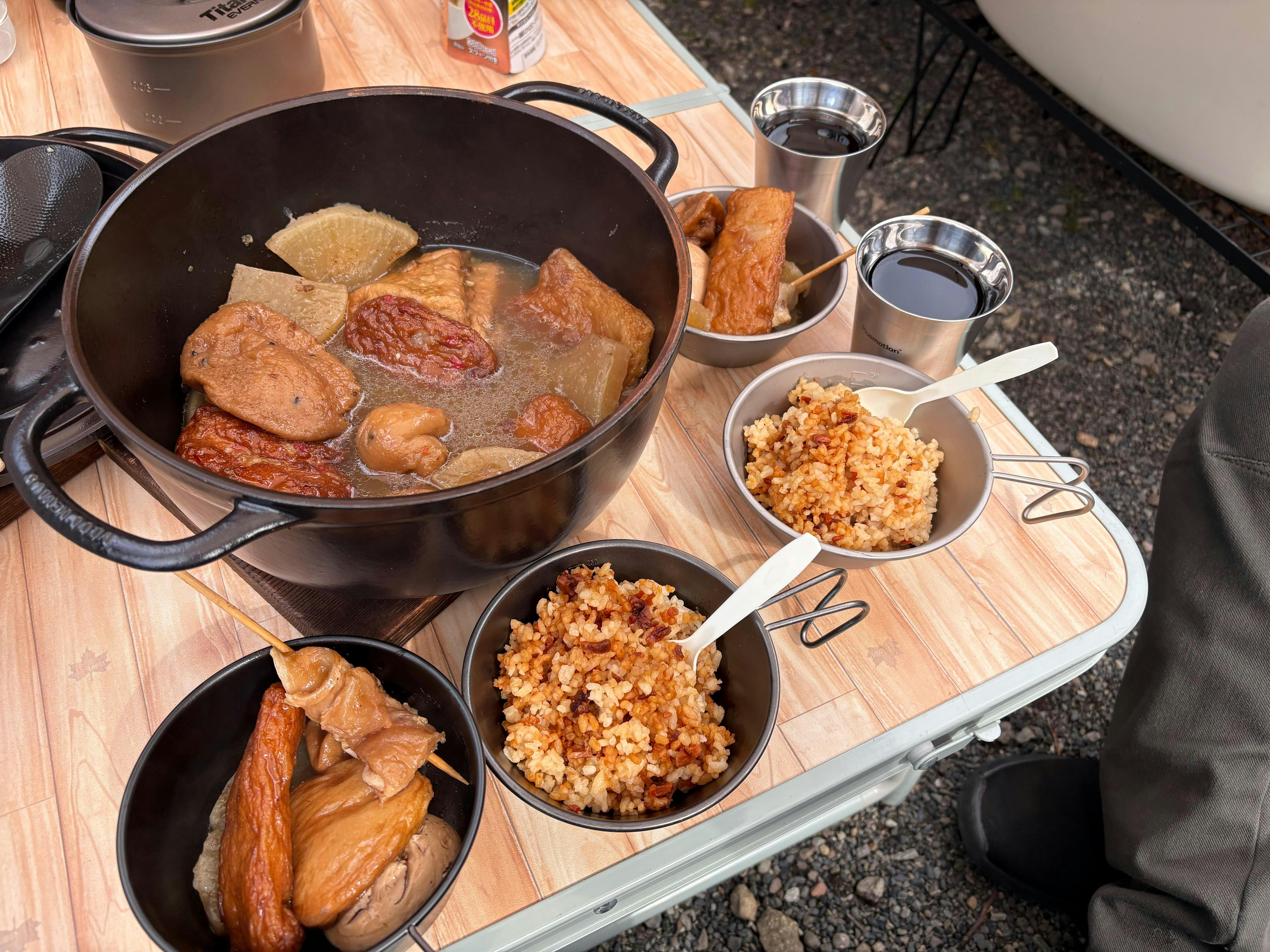 黄金のシェラカップ、小皿と深型ブラックシェラを2個ずつ購入してスタッキングしてます❗️真鍮の質感はしっとりとした重さがあるので最高です。チタン系は軽い分、安っぽさがでるので、トウクラを一軍装備してます〜オートキャンパーはこれでしょ‼️