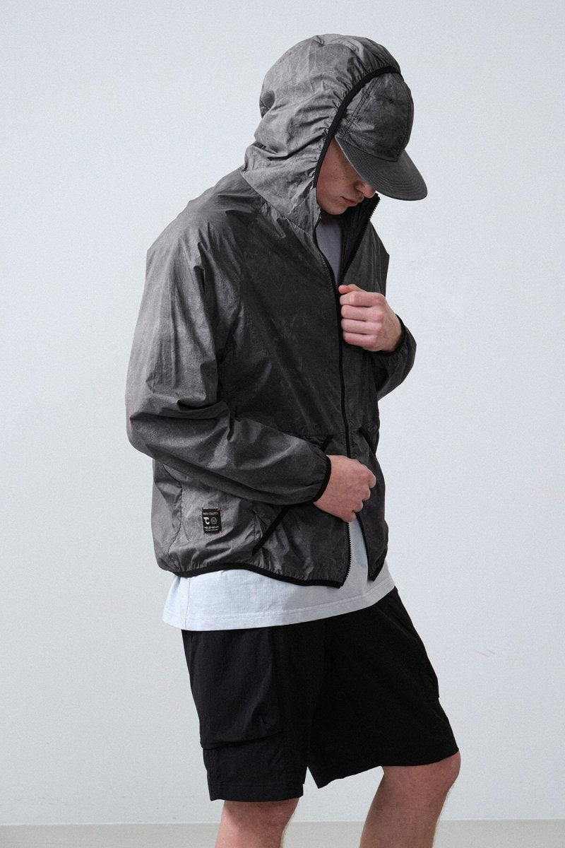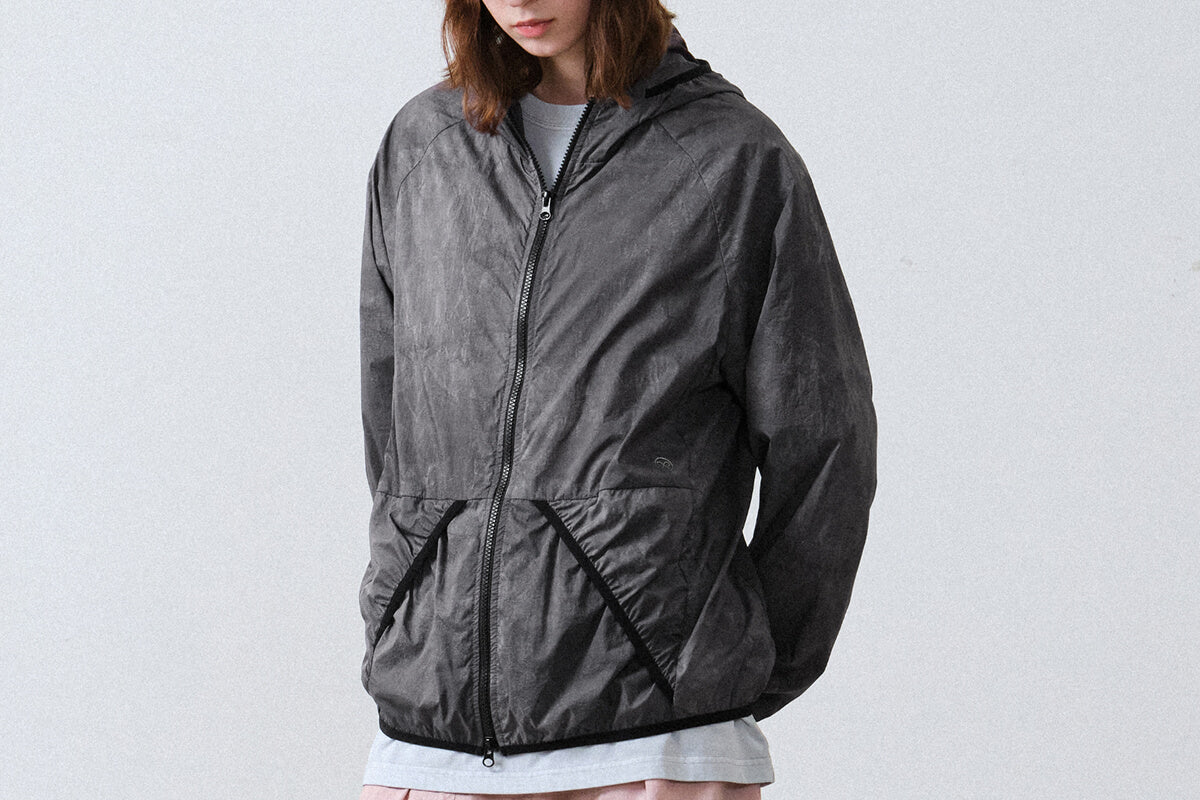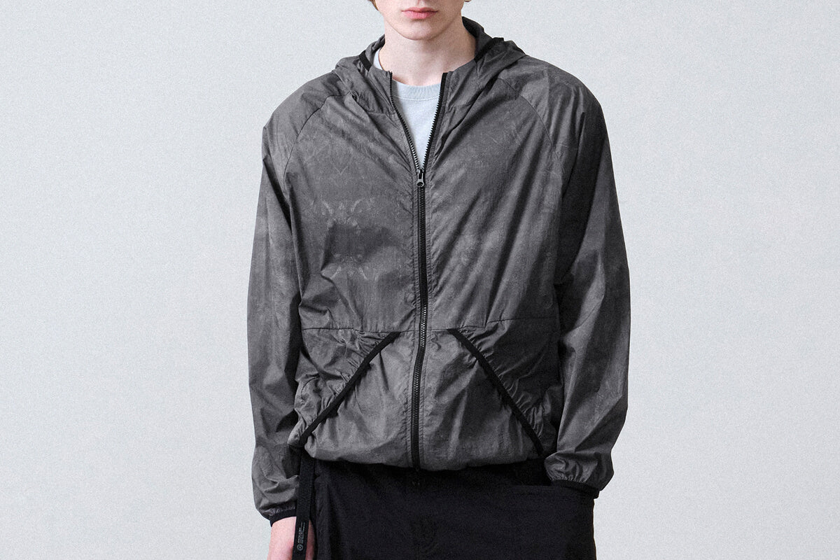 HELEMENTのシグネチャーモデル「モンブラン」のシルエットをベースに、オリジナルのパターンプリントと機能的なディテールを融合した高機能シェルジャケット。