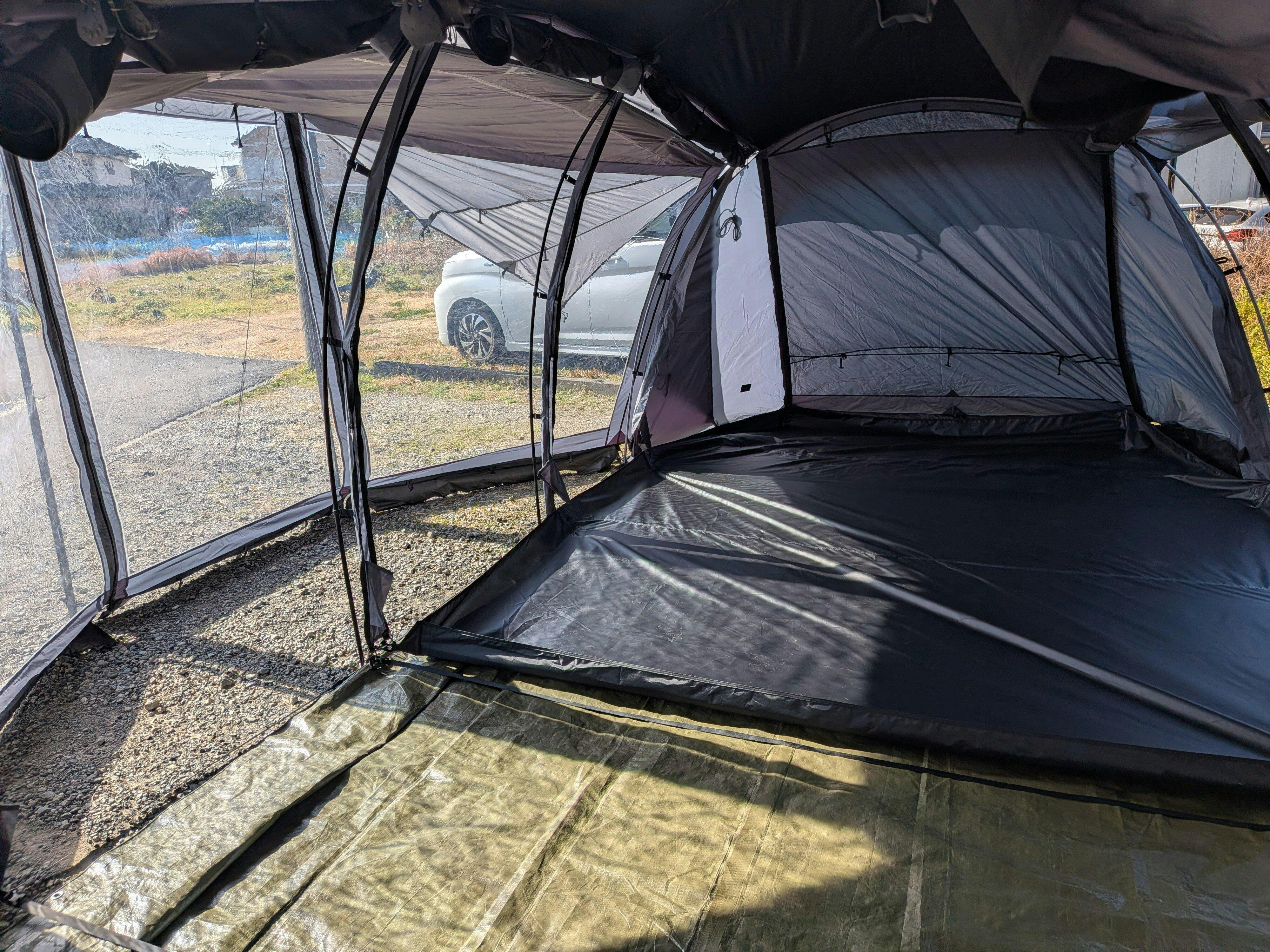 ・日焼けによる色あせが生じることがあります。予防のため市販のシリコン系の防水(またはUVカット)スプレーを塗布いただく際は、それらの説明書をよく読んだうえでご使用ください。 - テント生地内部のブラックコーティングについて