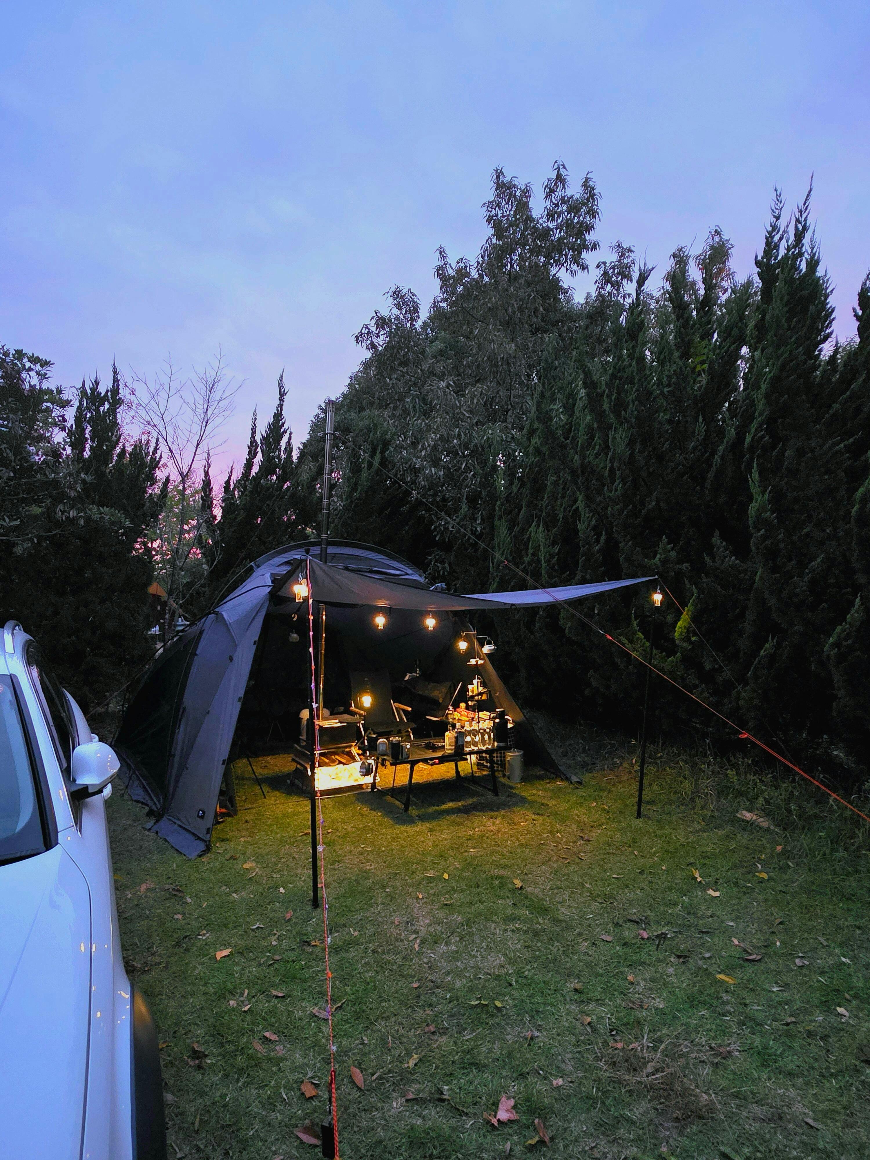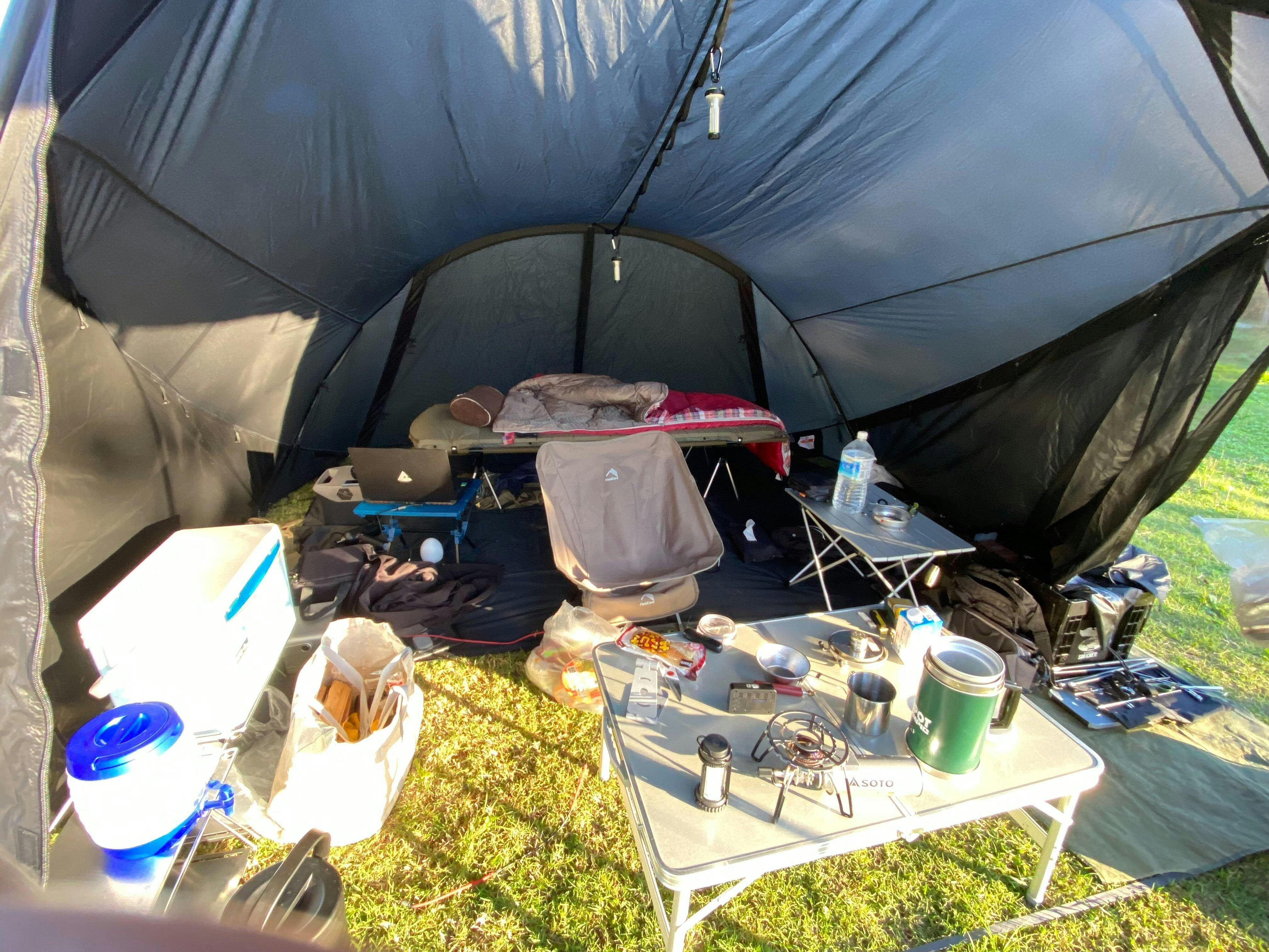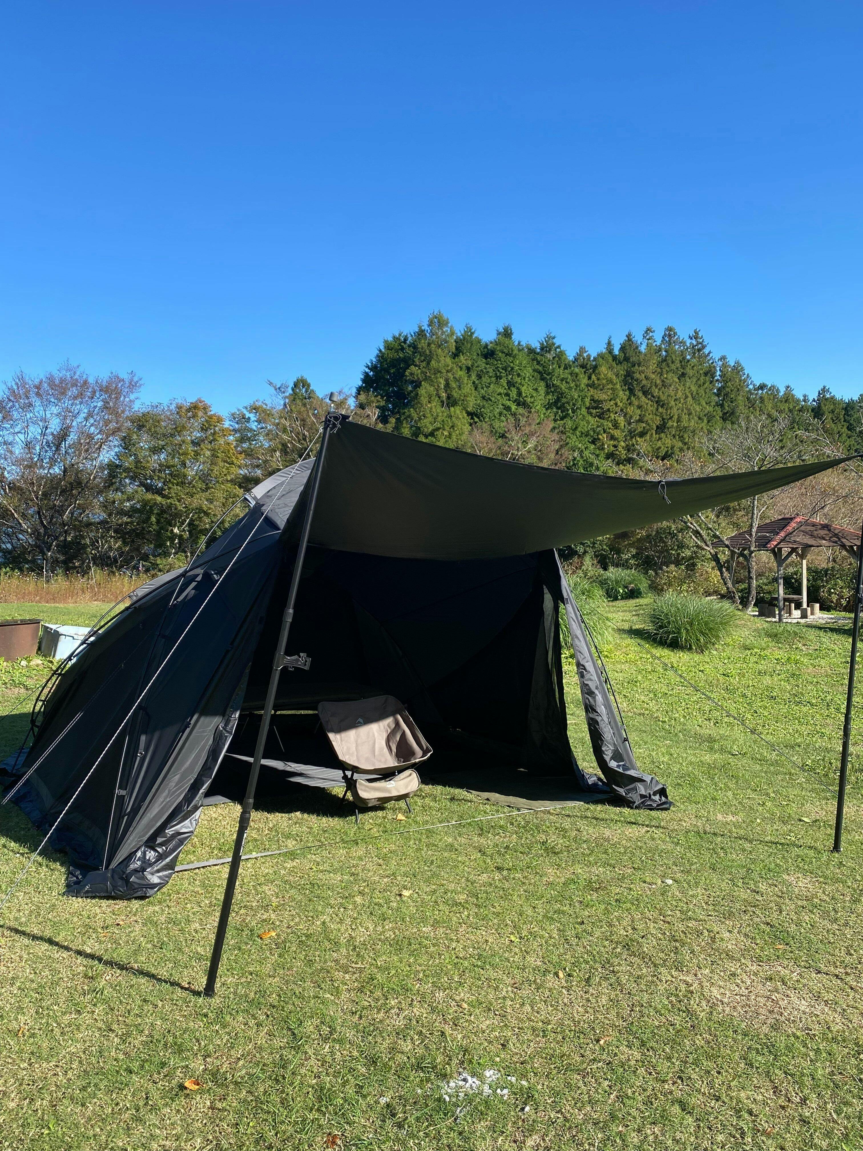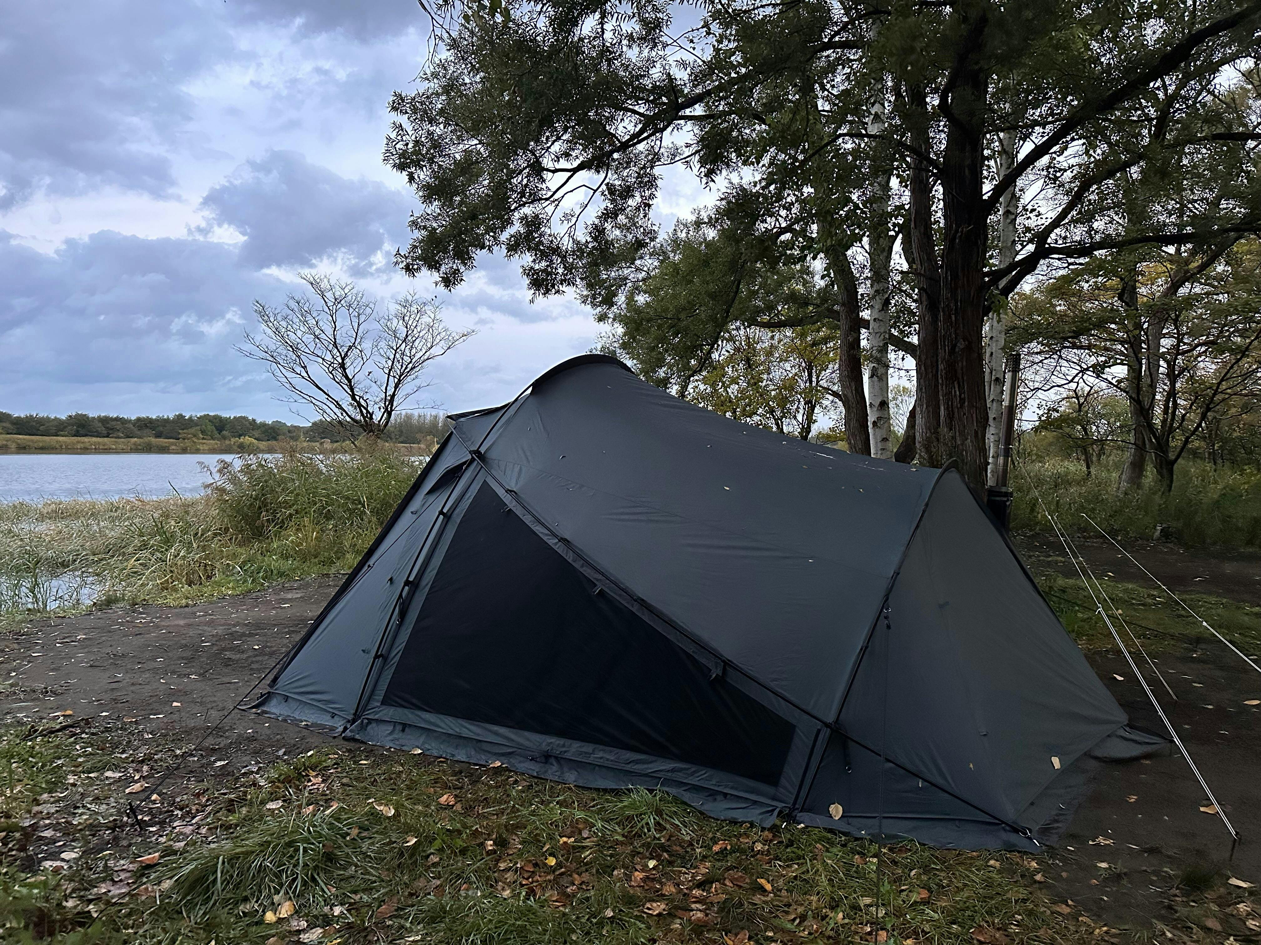 テンビシェルターは3本ポールで直感的に設営でき、女性一人でも15〜20分で完了する手軽さが大きな魅力。幕内は約2 mの天井高とワイドフロアでソロからデュオ、家族までゆったり過ごせる。四面メッシュと天窓が優れた換気と眺望を提供し、冬はストーブも置ける広さでオールシーズン快適。ブラックやグレーの洗練カラーとシャープなフォルムがサイトで映え、価格以上の質感と耐風性に満足の声が多数。ペグダウンが少なく撤収も迅速で、結露を抑えるルーフシートやインナーテントなどオプション拡張も豊富。所有欲を満たす“一軍”テントとして高評価を集めている。