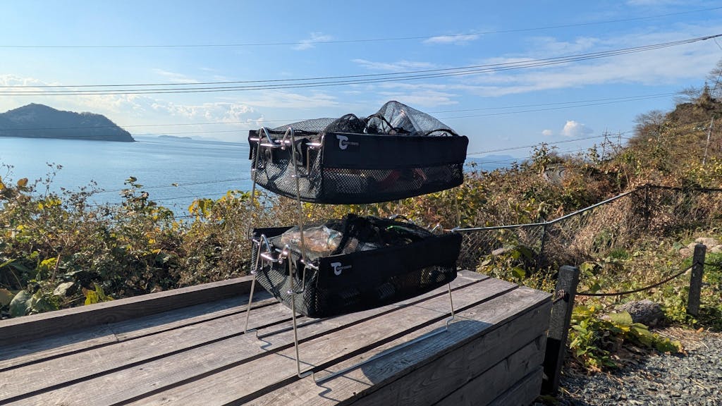 バケット購入を悩んでいましたが、思いきって買っちゃいました。しかし使用してみて高さも丁度良くコンパクトで抜群です!メッシュで隠せて風で飛んでしまうことも無いし、2段セットで使用用途も色々と出来て満足です!大事に使用させて頂きます。