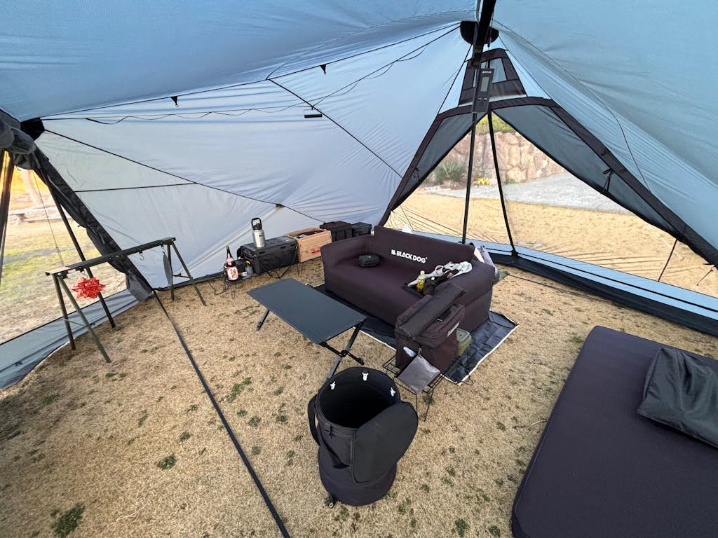 従来のテントでは、空間の狭さや構造の制約から、自然との繋がりを十分に感じることが難しいと感じることがありました。オブセルは、そのような制約を解消し、テント内で過ごしながら自然を感じることができる広々とした空間を提供します。