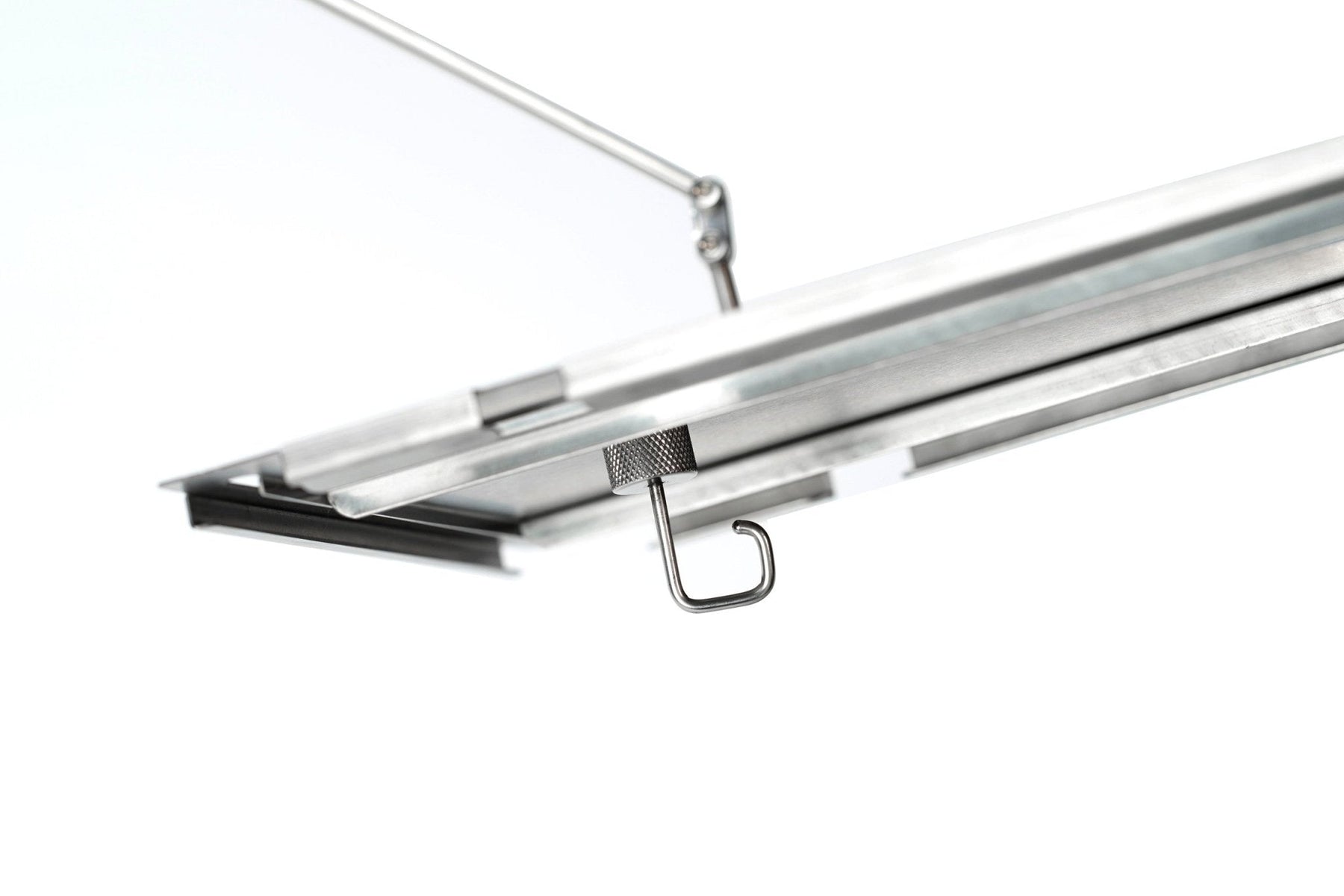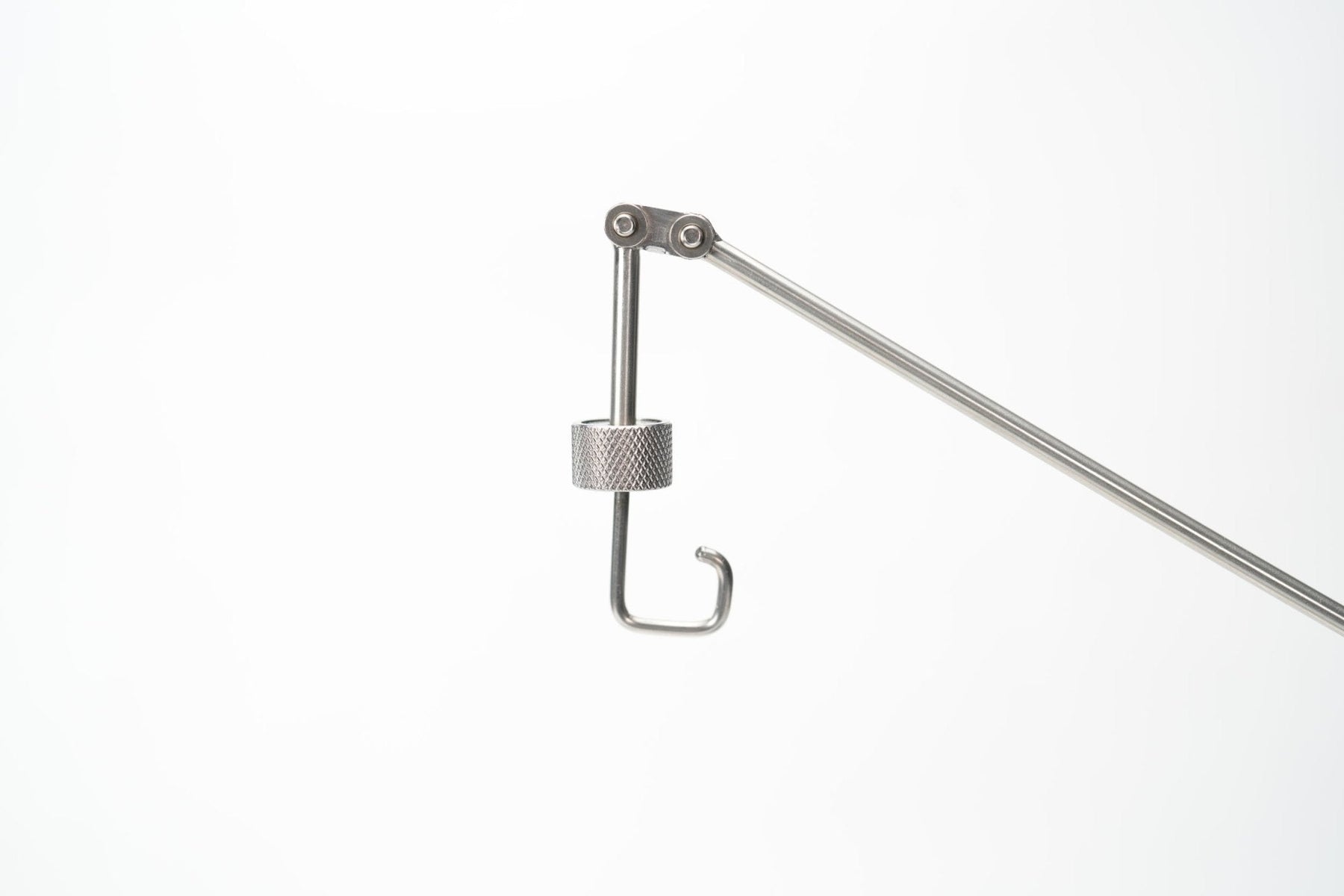 - ・耐加重は1kgですが、アームの角度・天板の材質・ネジの締まり具合により大きく異なります。またアームが真横に伸びきっている状態では、わずかな重量でも転倒する恐れがあります。表記耐加重の制限に関わらず、使用前に必ずバランスを確認して使用してください。