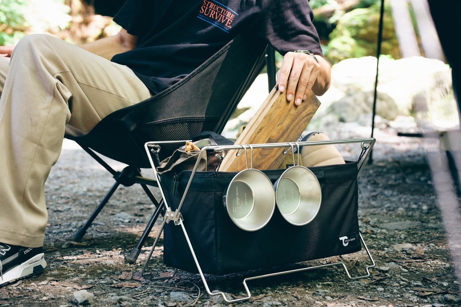 アウトドアへ出かける際、車のトランクや荷室はどうしてもギアが山積みになり、下のほうにある道具を取り出しにくいのが当たり前になっていました。そこで私たちは「積んだままでも即アクセスできる」ストレスフリーな構造を目指し、フレームとファブリックを組み合わせたハイブリッドコンテナの開発に着手。