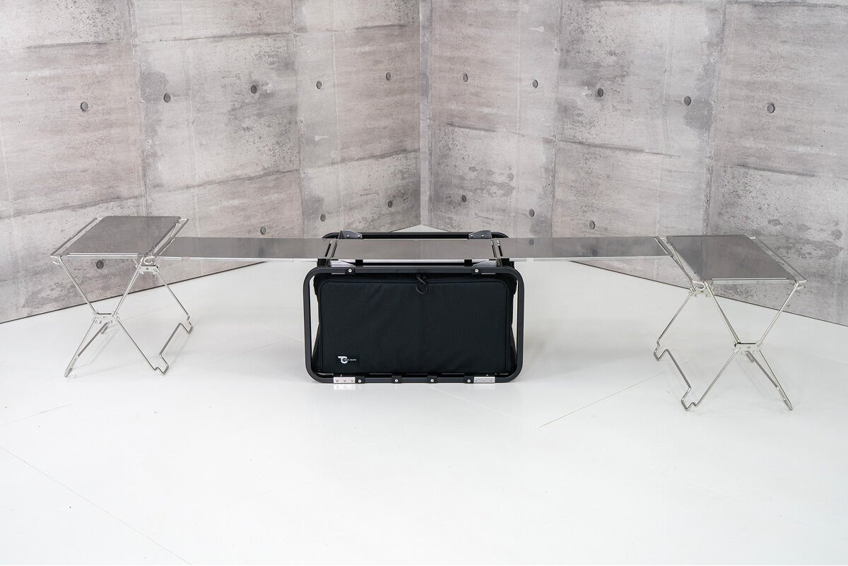 コードユニットは、ステンレスの洗練デザインとモジュール構造が生む自在なレイアウト性が魅力。テーブル・ラック・薪置きなど多用途に対応し、マルチバッグやバケットシェルフ、フラットバーナーとの連携でサイトを一気にスタイリッシュに統一できる。工具不要で設営撤収が迅速、折りたたんでコンパクトに収納可能。高い耐久性と安定感を備え、天板を追加すれば三段ラックや囲炉裏テーブルへの変形も自在。ギアを選ばないシルバーの質感がサイト全体に統一感をもたらし、リピート購入者が続出する拡張性の高いキャンプギアとして評価されている。