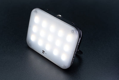 小型軽量タイプの光量では足りないこともあり、出来る限り小型で光量も十分であろうとこちらを選択しました。使用感としては、想像通り十分な光量で、バッテリーの持ちも十分でした,当初はサブ的な位置づけで、考えてましたが、メインの照明として決定しました。皆さんにオススメ出来ます。
