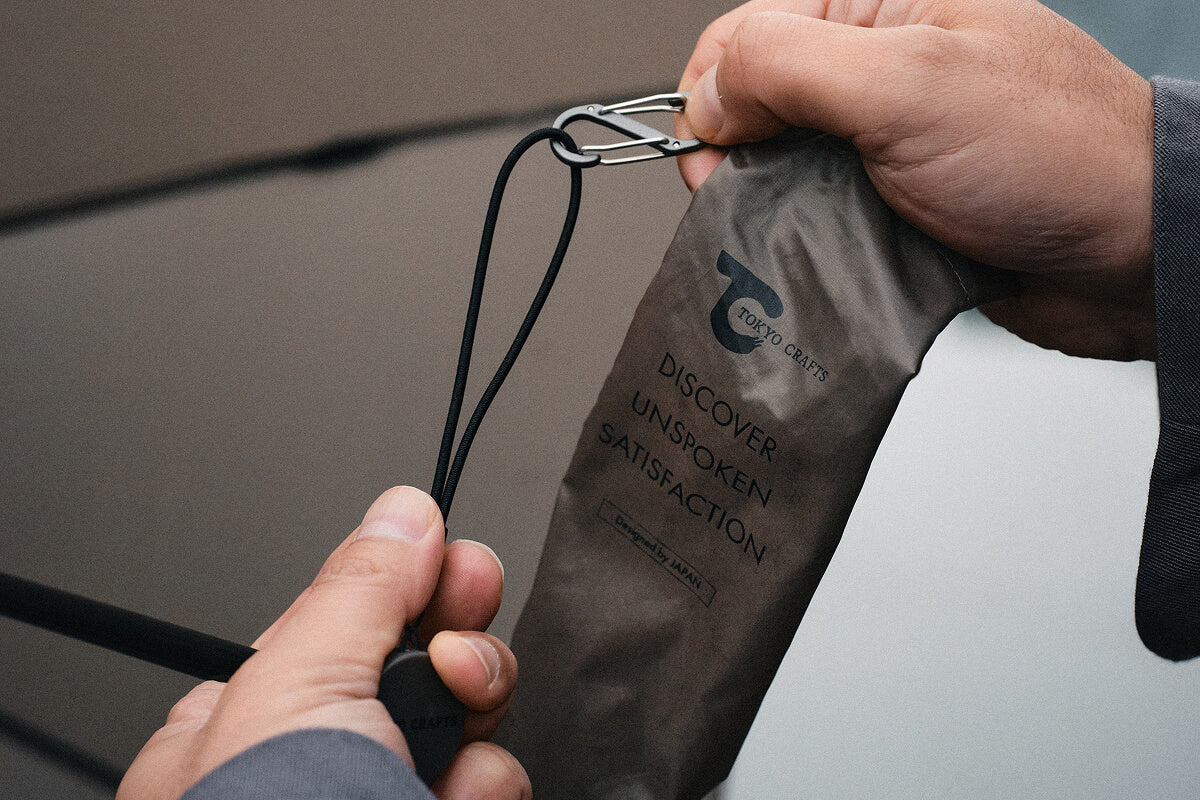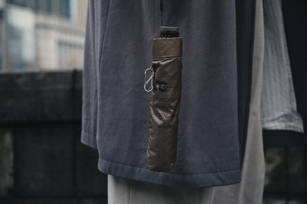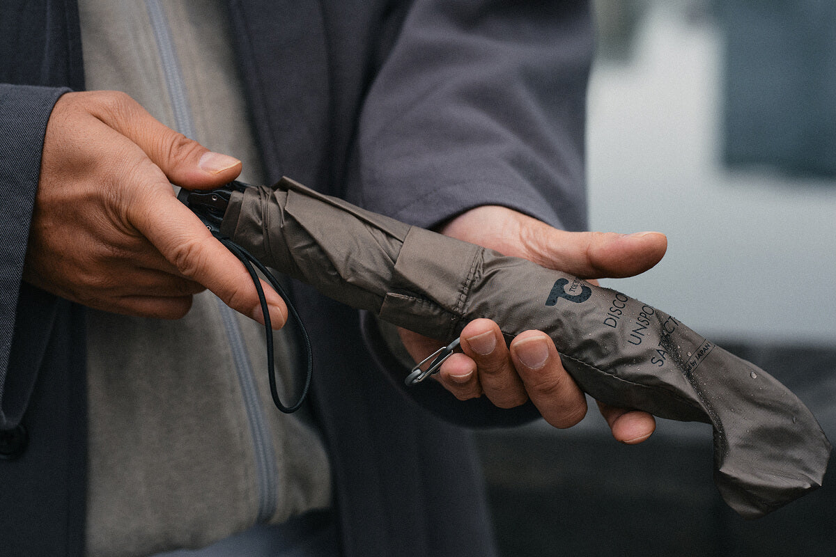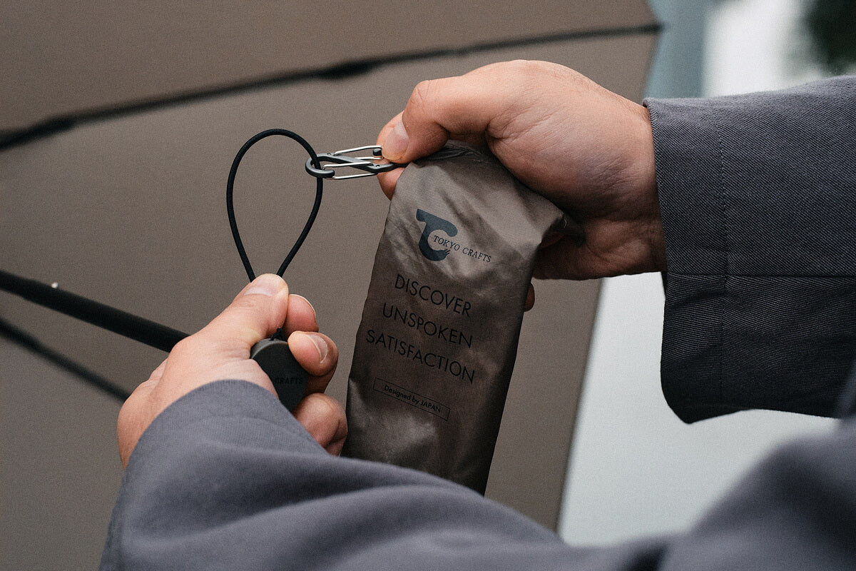 収納カバーをなくさないカラビナ構造など、使い手の実用性(Utility)を第一に考えた、毎日持ち歩きたくなる「UTアンブレラ」です。