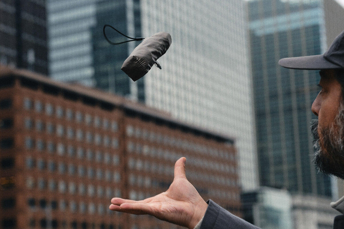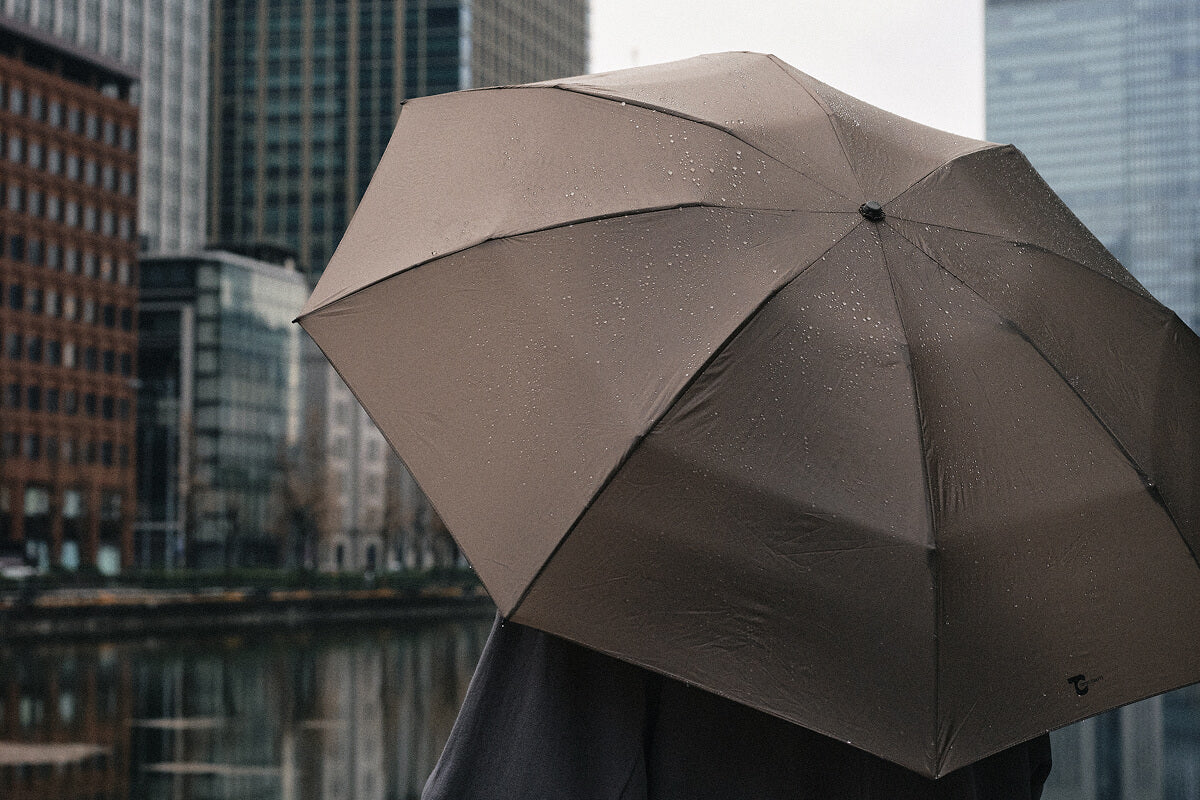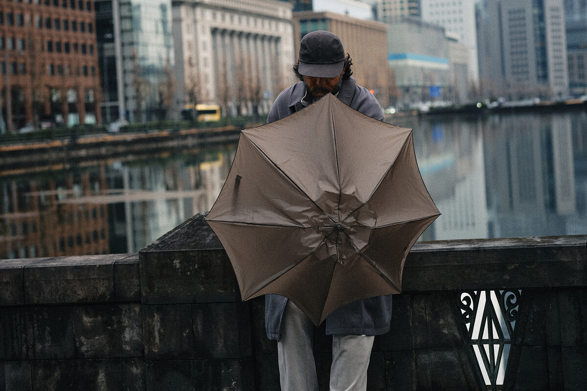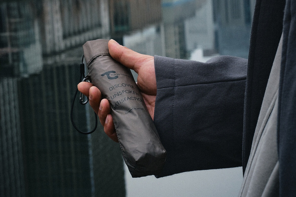 収納カバーをなくさないカラビナ構造など、使い手の実用性(Utility)を第一に考えた、毎日持ち歩きたくなる「UTアンブレラ」です。