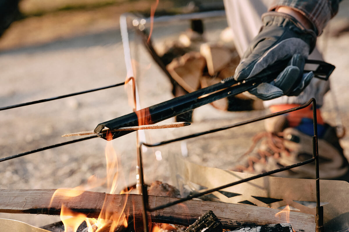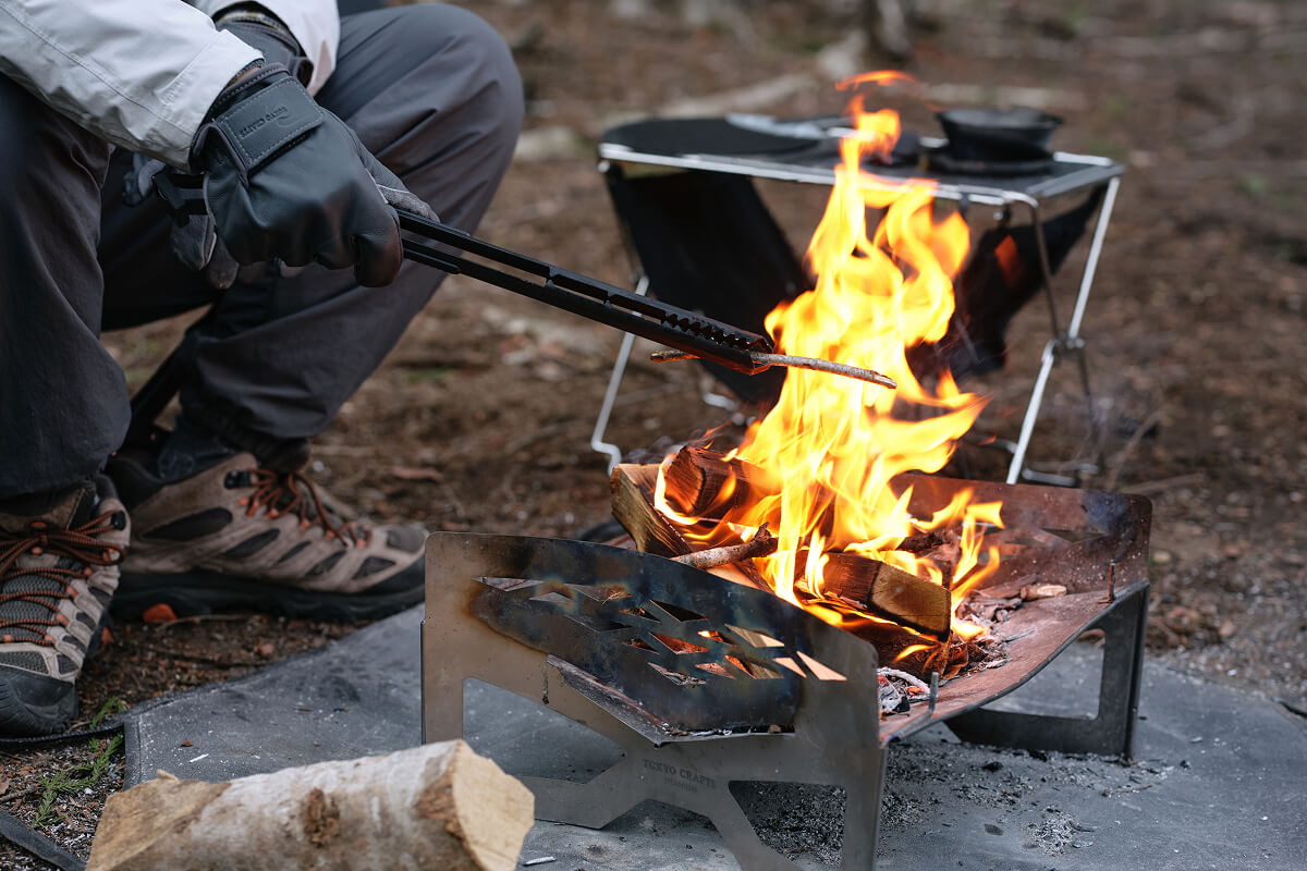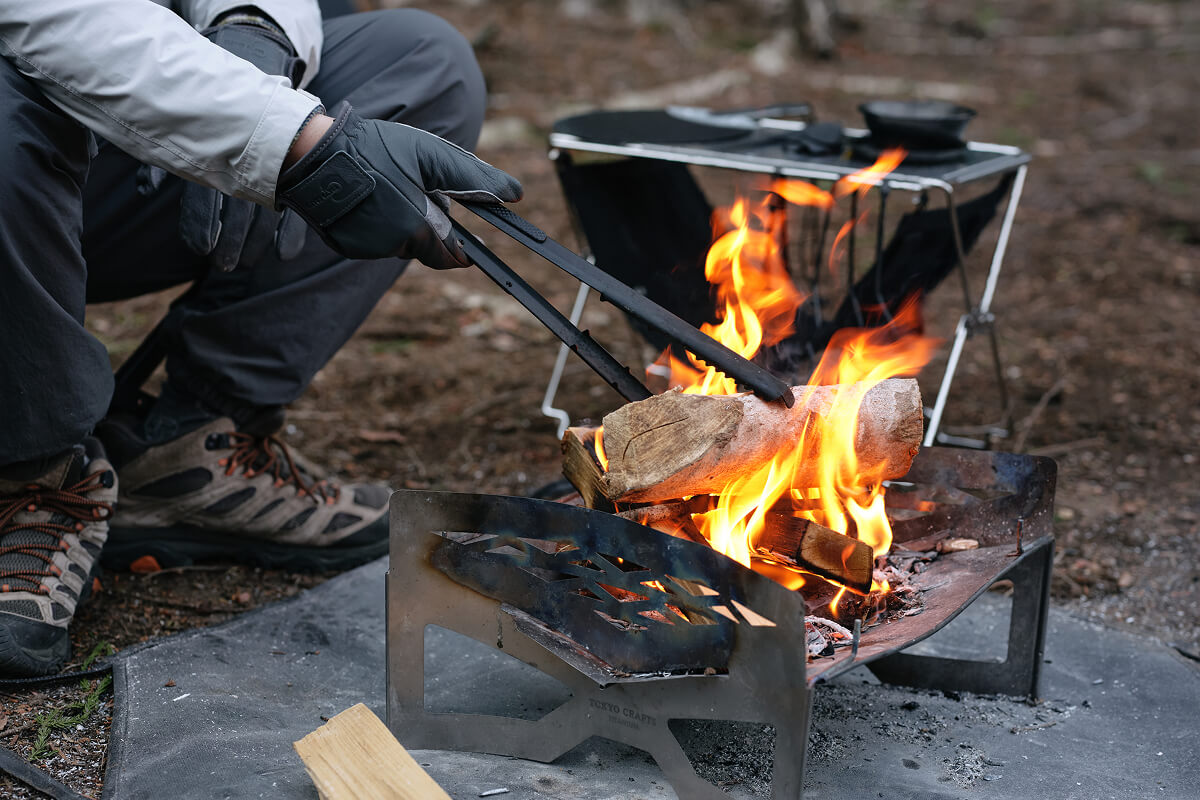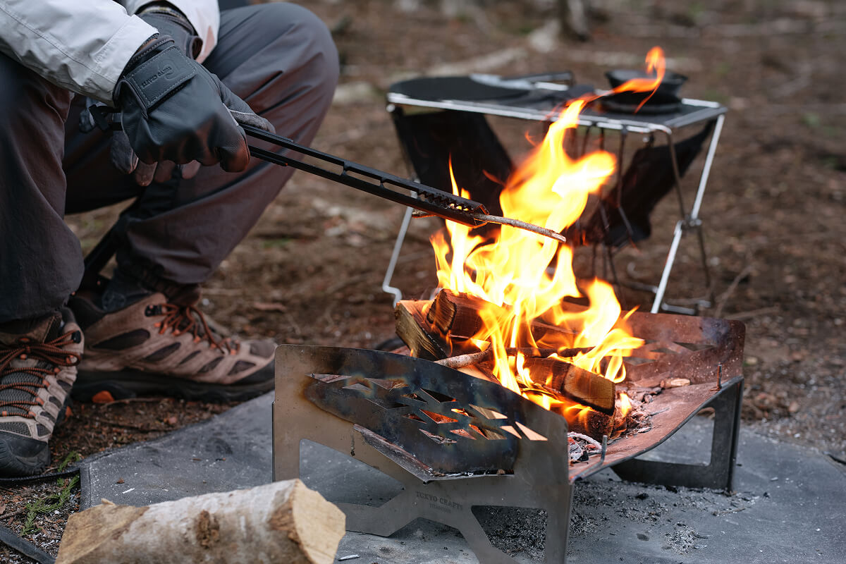 焚き火を育てる時間は至福ですが、薪を動かすたびに両手を使ったり、重い薪に翻弄されたりと、道具の不便さがその没入感を削いでしまうことがありました。私たちが求めたのは、単に薪を移動させるだけでなく、熾火の一つひとつまでをデザインできる、手の延長のような道具です。