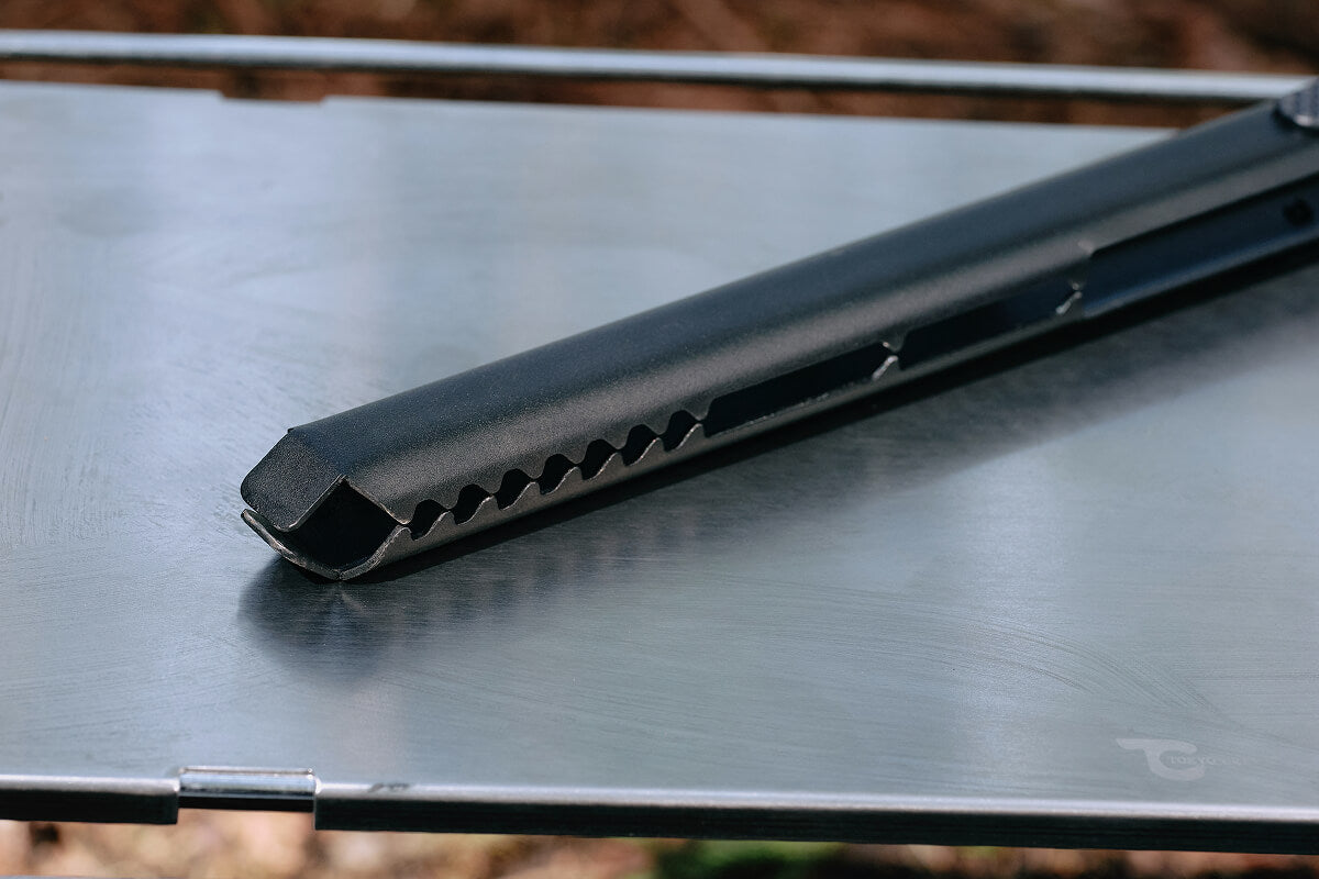 この独自の屈折構造は、重い薪を持ち上げる際の手がかりとなり、最小限の力で最大級のホールド力を生み出します。ただ薪を焚べるだけの時間はもう終わりです。Delta Stokeを握った瞬間、熾火のひとつ、火の粉の一粒までを意のままに操る快感に、心の底から没頭できるはずです。