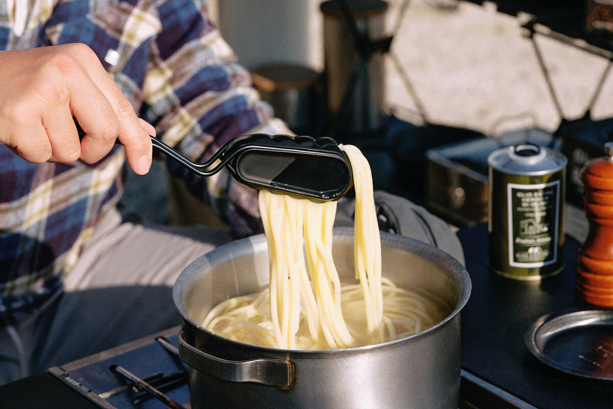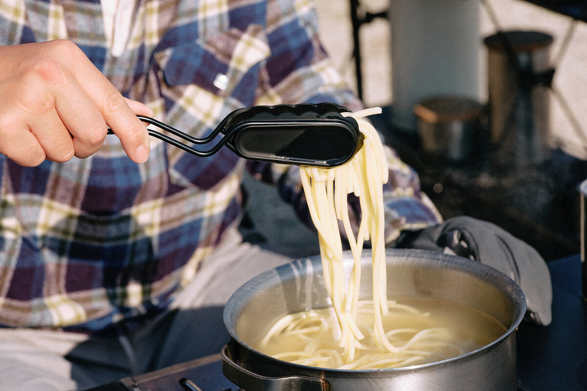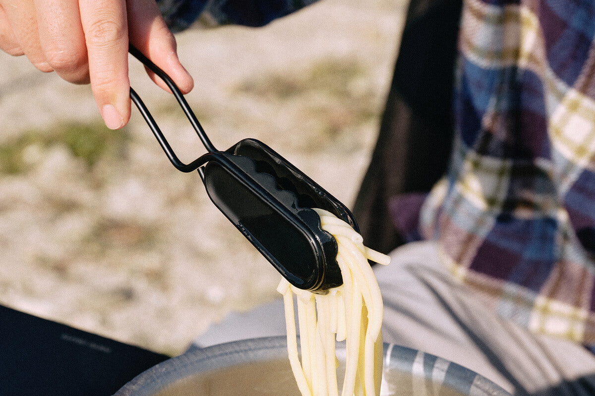 ミニトングは指先感覚で扱える超コンパクトサイズで、シェラカップやメスティンに収まる携行性が最大の魅力。先端のギザ加工により氷・漬物・スナック・焼き物まで確実に掴め、箸代わりの“マイトング”としてソロでもファミリーでも重宝する。軽量ながら堅牢で、開閉の反発具合が程よく長時間使っても疲れにくい。ブラックを含む3色展開は他のギアと色合わせしやすく所有欲を満たし、2本を重ねてゴム留めすれば省スペース収納も可能。見た目の格好良さと実用性を兼ね備え、日常使いにもキャンプにも欠かせない一本として高く評価されている。